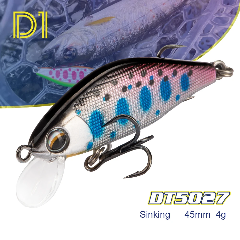 Señuelos de Pesca D1 Minnow 45mm 4G cebos duros de hundimiento trucha Artificial Mini Wobblers para Pesca perca Bass Stream Fish Tackle DT5027