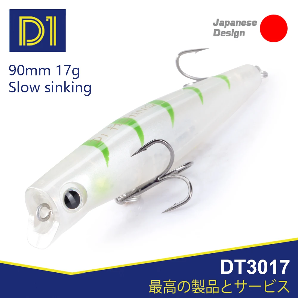 Señuelos de Pesca D1 Popper, 90mm, 17g, Crankbait de hundimiento lento, anzuelo Artificial duro, aparejos de Pesca