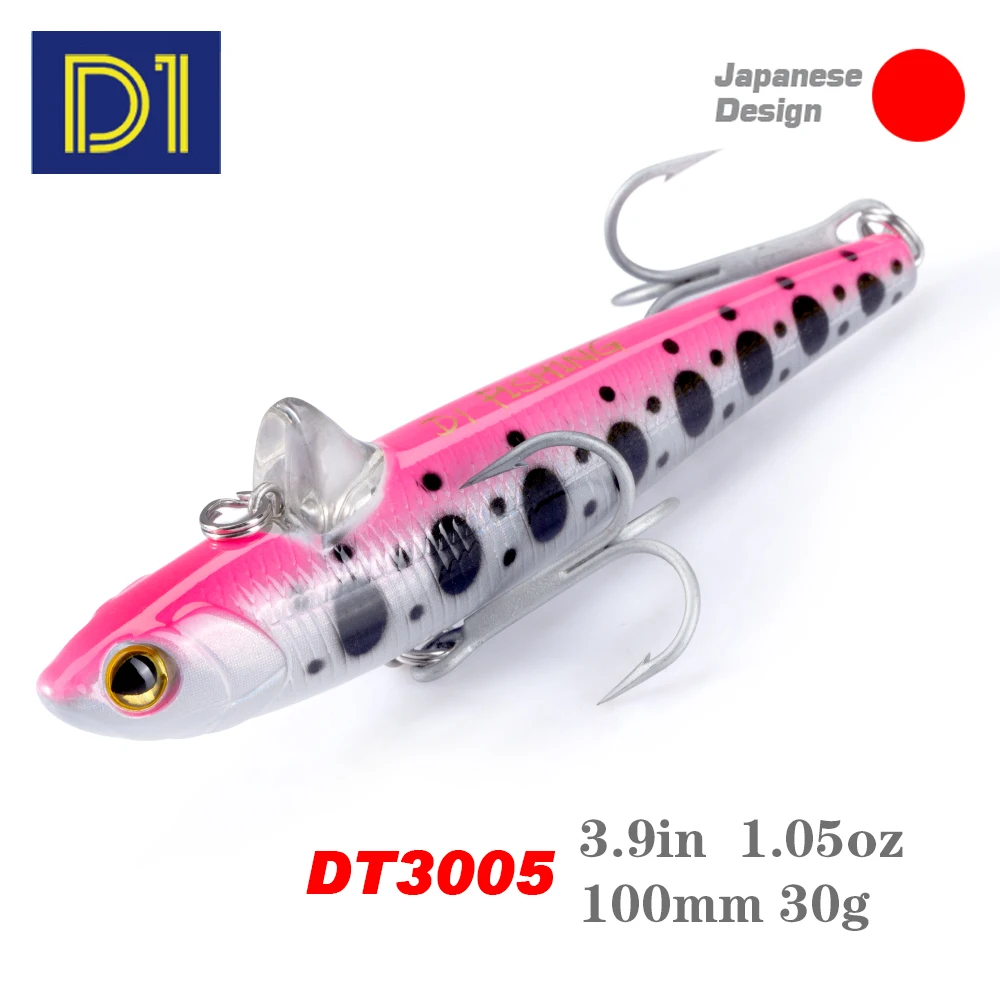 Señuelos de Pesca D1 VIB 100mm/30g cebos de mimbre duros artificiales de fundición larga de invierno que se hunden sin vibración, aparejos de perca Swimbait
