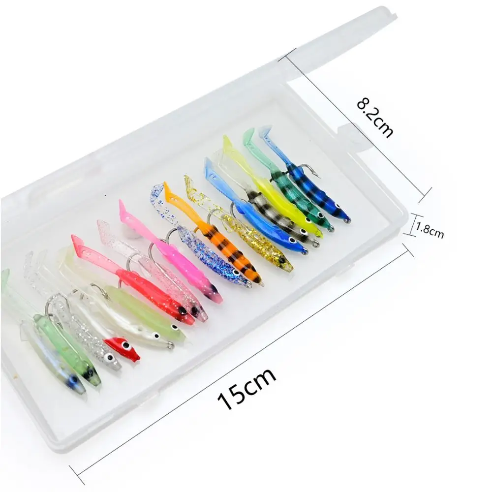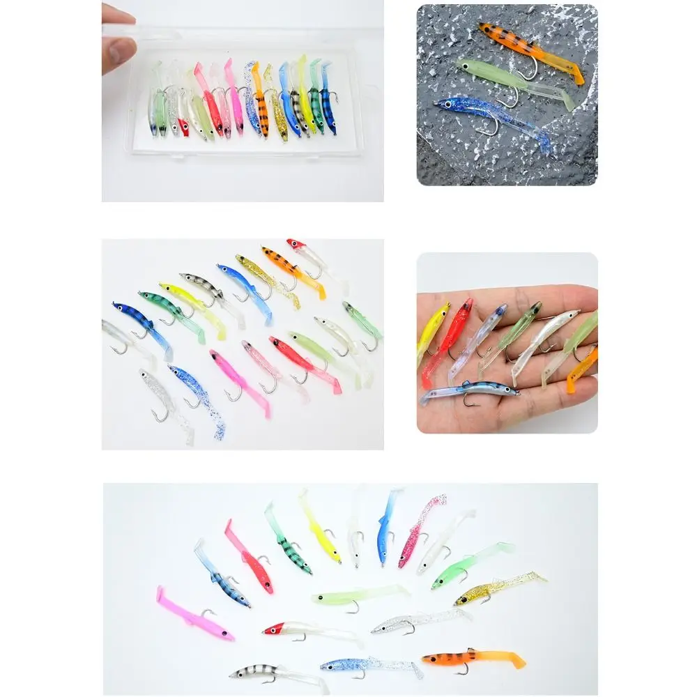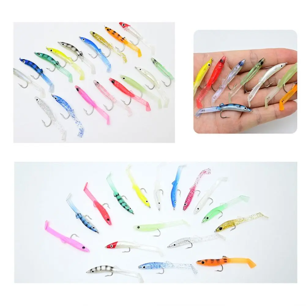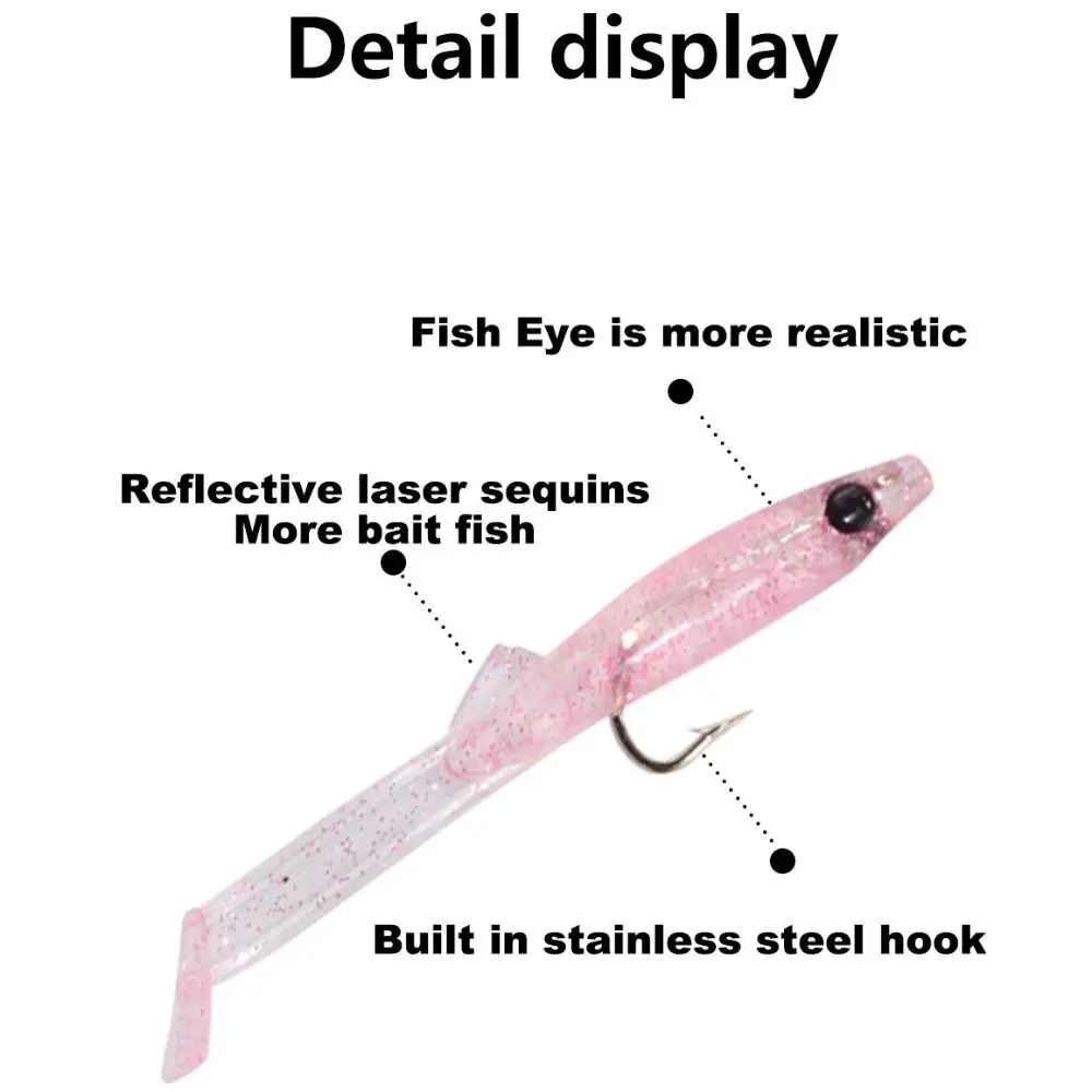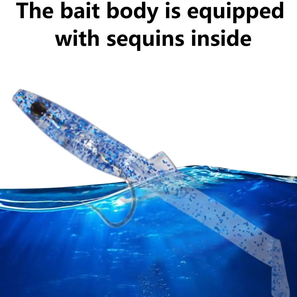 2. Señuelo de pesca, señuelo de anguila para peces, cebos blandos blancos y azules con anzuelo.