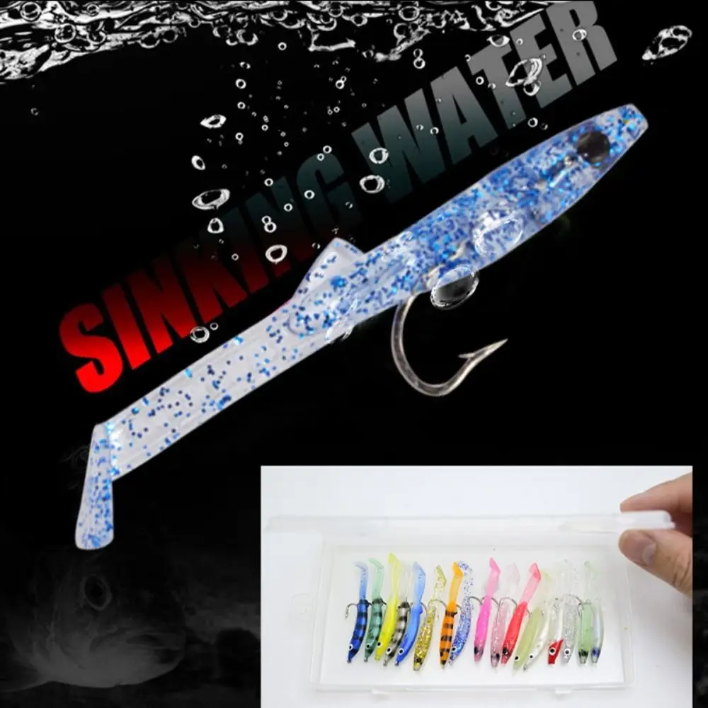 2. Señuelo de pesca, señuelo de anguila para peces, cebos blandos blancos y azules con anzuelo.