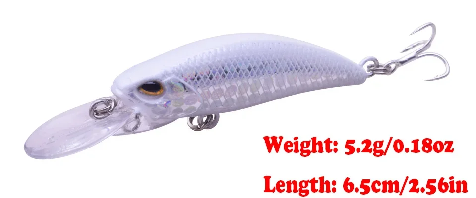 WDAIREN Quality Minnow Hard Fishing Lures Sinking Wobblers 6.5cm 5.2g Artificial Hard Bait Bass Pike Lure Pesca Fishing TackleBrand: WDAIRENLength:6.5cmWeigth: 5.2gDiving Depth: sinkingIs_customized:yesType :Minnow hard baitsMaterial:ABS High reflection plasticQuality hooks:2x Strong VMC HooksRing:Strong Flat RingTarget Fish: Pale chub, bass, Pikes, Yellowcheck carp, Chinese perch, Topmouth culterpacking list:1*Fishing lure
