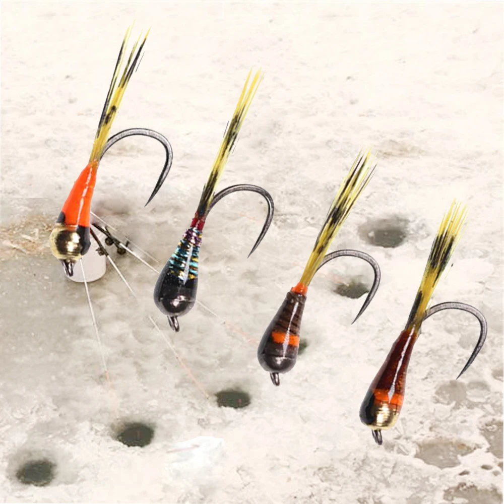 Señuelos de pesca en hielo con mosca de Ninfa perdigón de tungsteno, cuentas de latón artificiales de hundimiento rápido, moscas de pesca para trucha, pesca de invierno, 8 Uds.