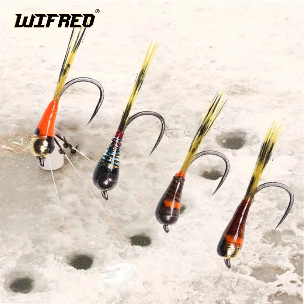 Señuelos de pesca en hielo con mosca de Ninfa perdigón de tungsteno, cuentas de latón artificiales de hundimiento rápido, moscas de pesca para trucha, pesca de invierno, 8 Uds.