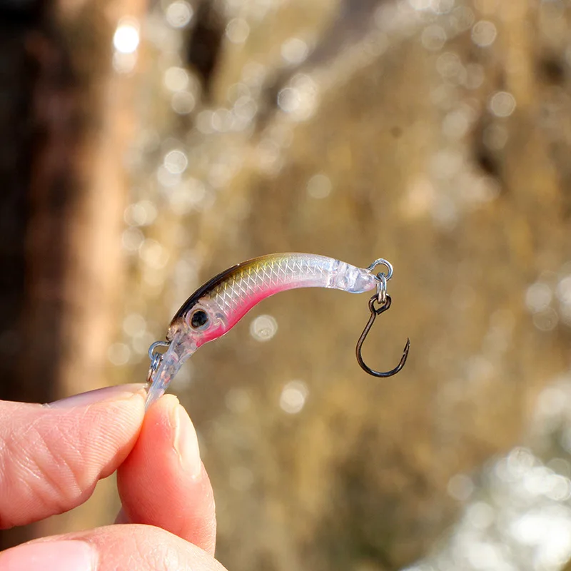 Señuelos de Pesca flotantes, 1 piezas, Mini pececillo, 40mm/1,2g, pequeño pez curvo, caña de un solo gancho, cebo de trucha StripeTilapia blanca