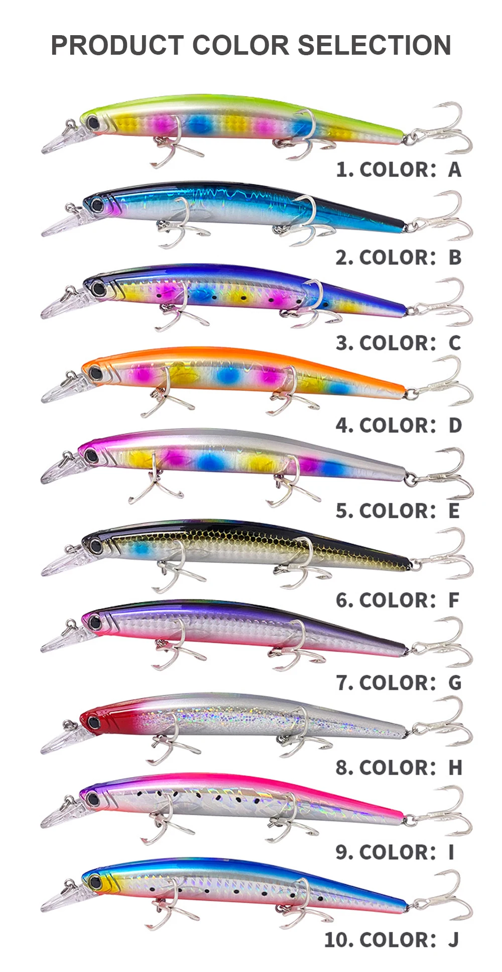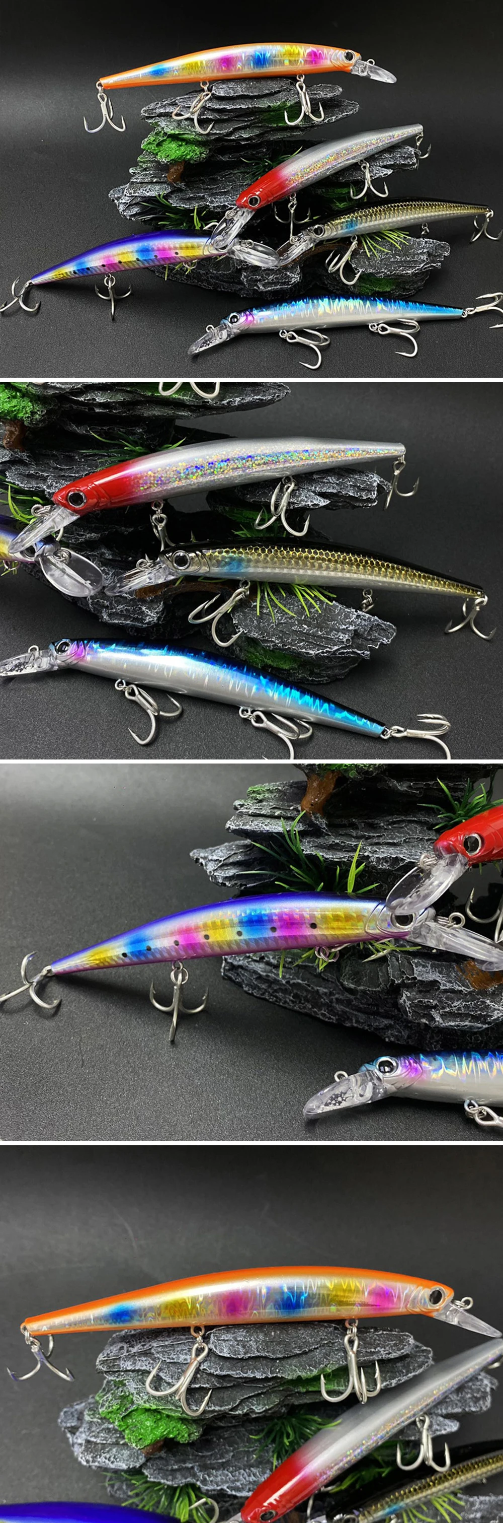 3. Los cebos tienen una pintura realista y ojos 3D vívidos, hacen que el cebo parezca peces reales nadando en el agua durante la pesca.