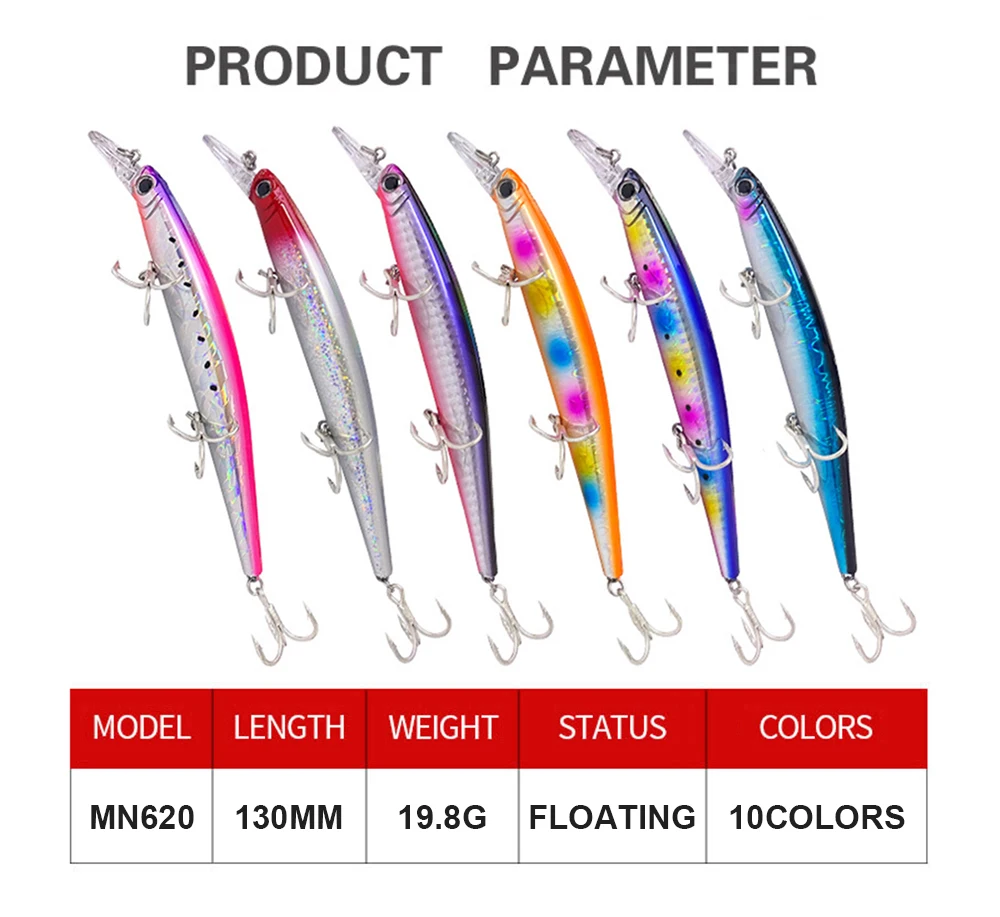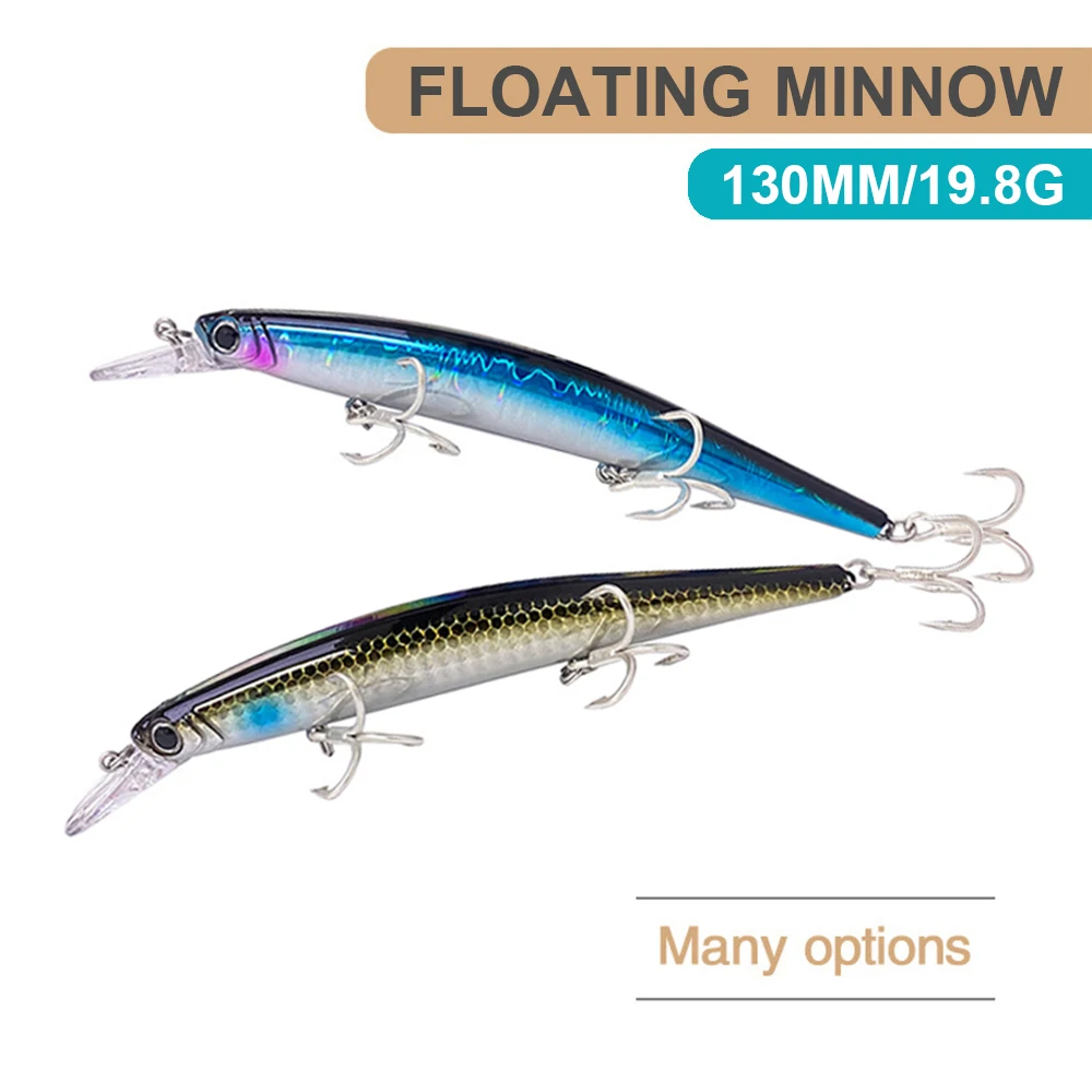 Señuelos de pesca flotantes de 13cm 19,8g, Minnow Wobbler, cebo duro Artificial de fundición larga, accesorios de pesca de agua de mar, Lucio, lubina MN620