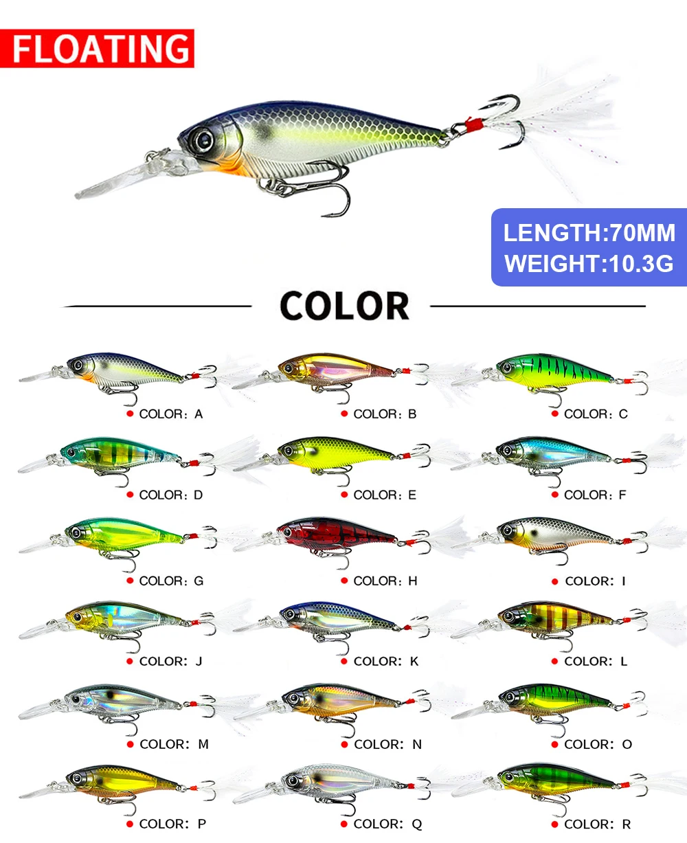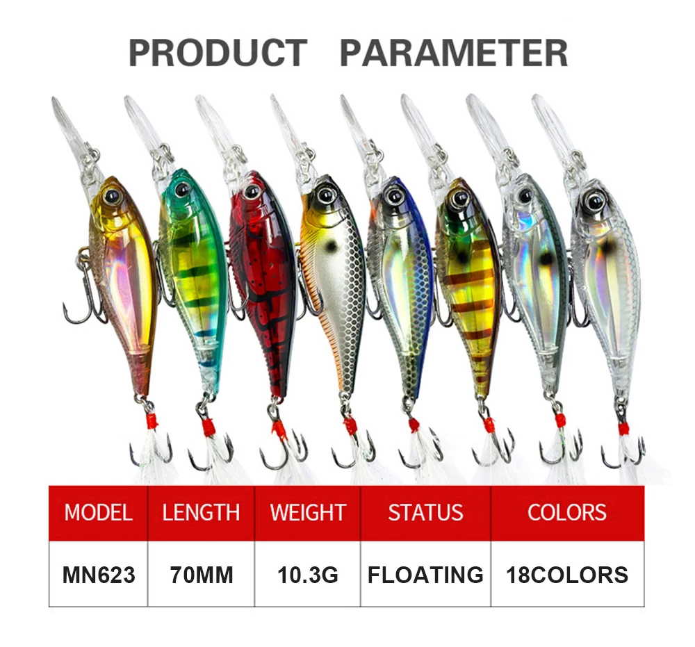 Señuelos de pesca flotantes de 7cm y 10,3g, Minnow Wobbler, lanzamiento largo, cebo duro Artificial, Jerkbait, accesorios de pesca, trucha, lubina MN623
