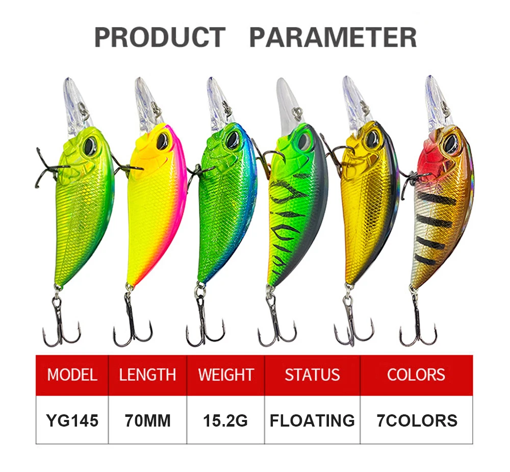Señuelos de Pesca de 7cm Y 15,2g, Crankbait flotante Wobbler, Columpio de buceo profundo, cebo duro Artificial, pesca en agua de mar, mero bajo YG145