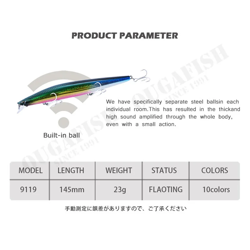 6. Bolas de metal: Bolas de acero inoxidable en el interior, para mantener el equilibrio del señuelo de pesca, para la mayor distancia de lanzamiento.