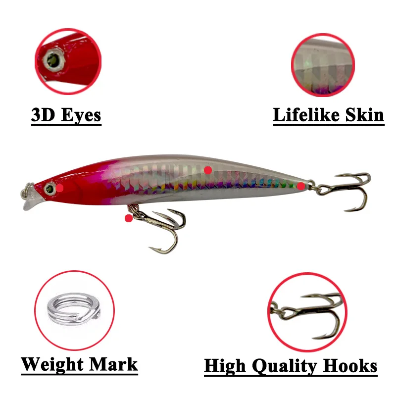 3. Los cebos tienen pintura realista y ojos 3D vívidos, hacen que el cebo parezca un pez real nadando en el agua durante la pesca.