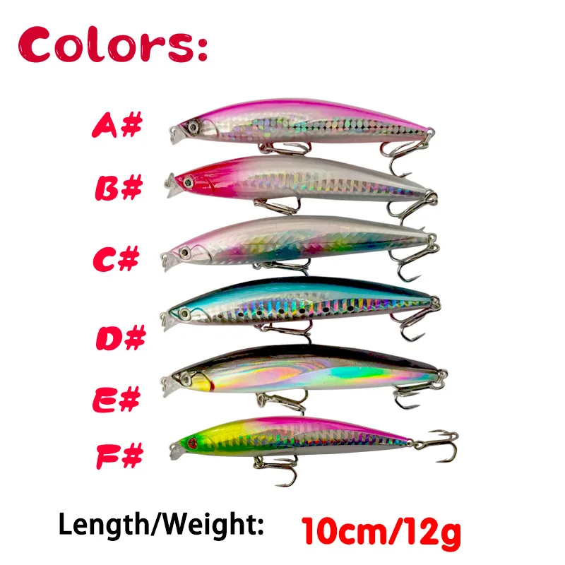 6. Bolas de metal: Bolas de acero inoxidable en el interior, para mantener el equilibrio del señuelo de pesca, para la mayor distancia de lanzamiento.