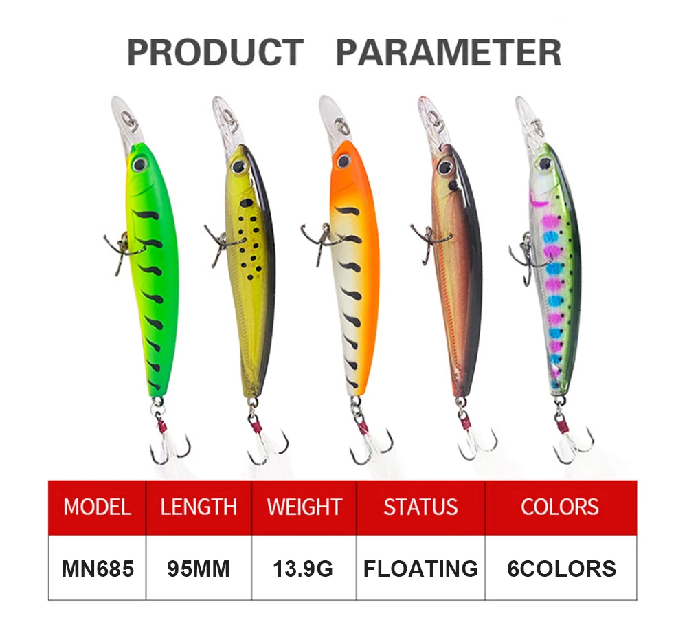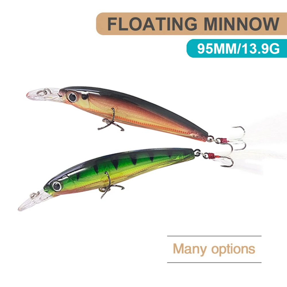 9,5 cm 13,9G Señuelos de Pesca flotante Minnow Wobbler Long Casting Trolling cebo duro Artificial Jerkbait accesorios de pesca MN685