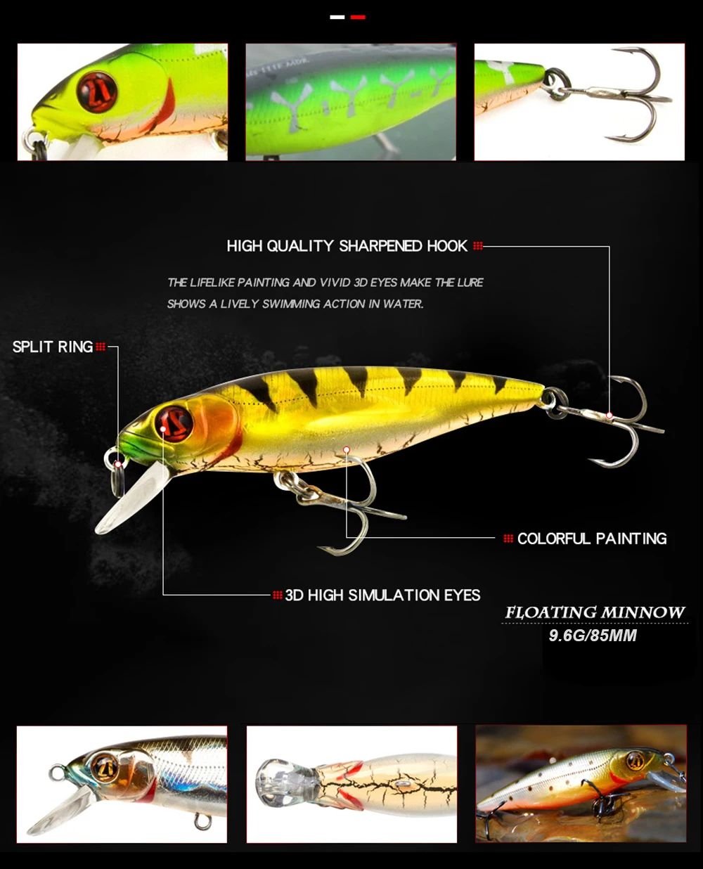 3. Los cebos tienen pintura realista y ojos 3D vívidos, hacen que el cebo parezca un pez real nadando en el agua durante la pesca.