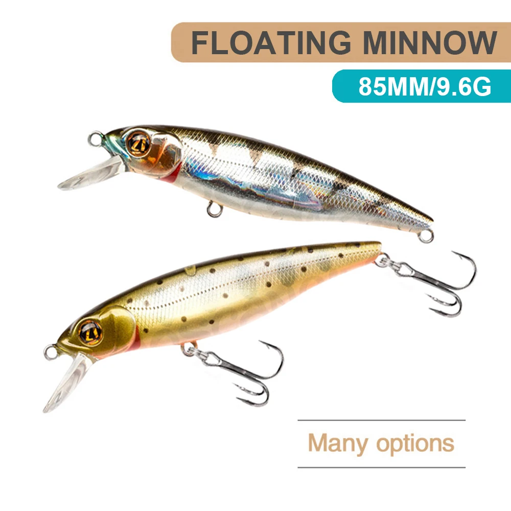 8,5 cm 9,6G Señuelos de Pesca Flotante Minnow Wobbler Long Casting Artificial Cebo duro Jerkbait Accesorios de pesca Trucha Bass MN627