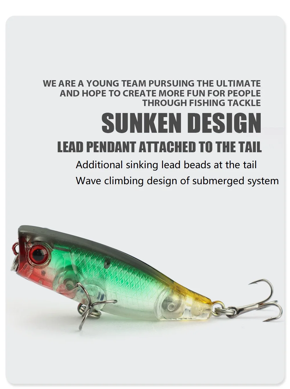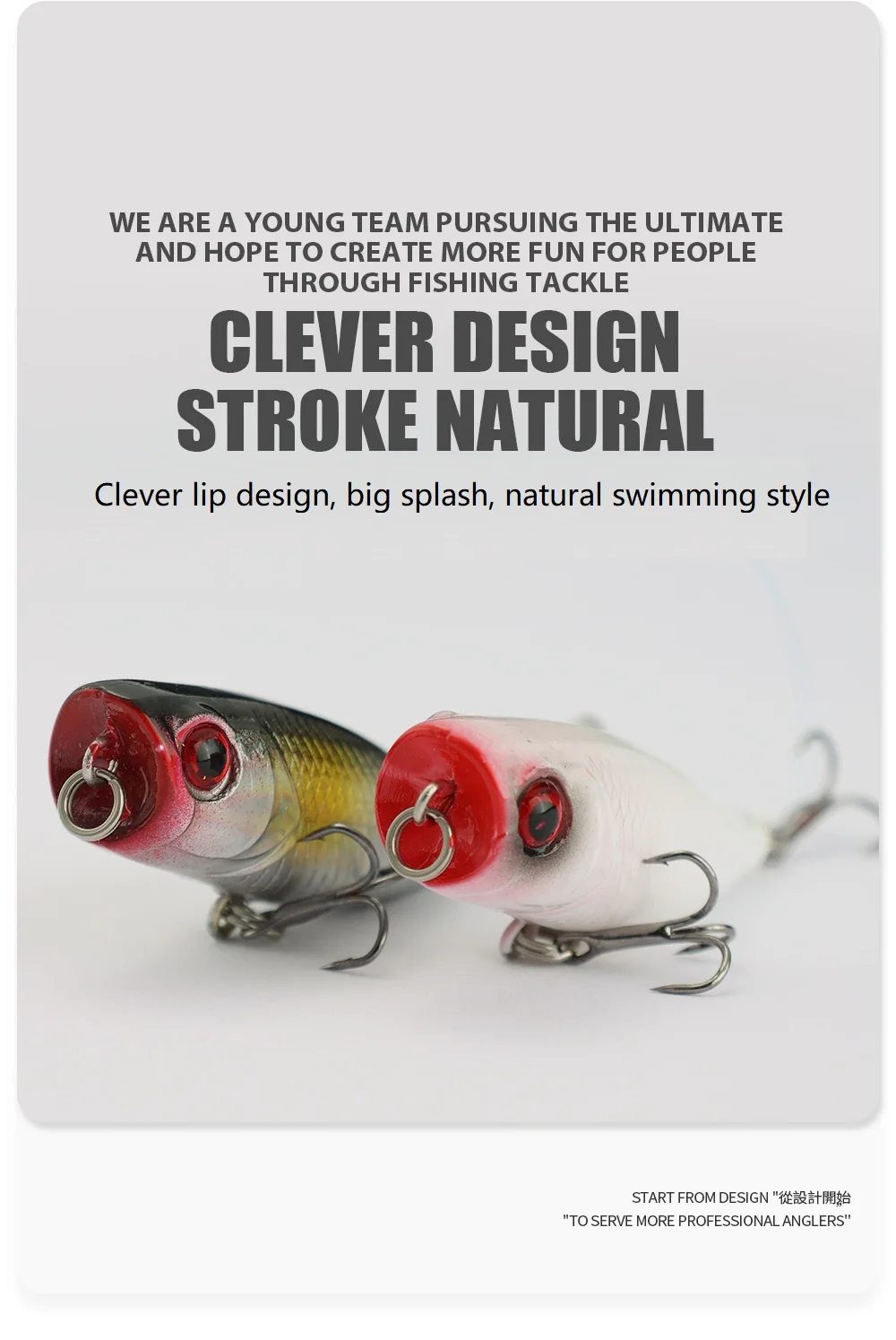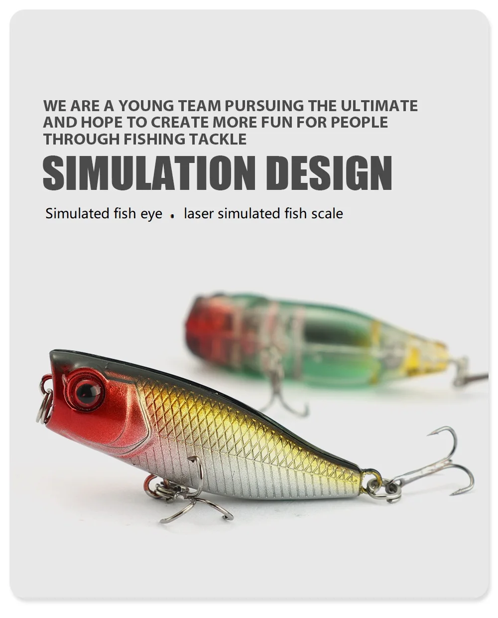 Señuelos de Pesca flotantes, cebo Popper Topwater Artificial 3D, Ojos de 4cm/4g, Wobblers, cebos duros de plástico con anzuelo triple