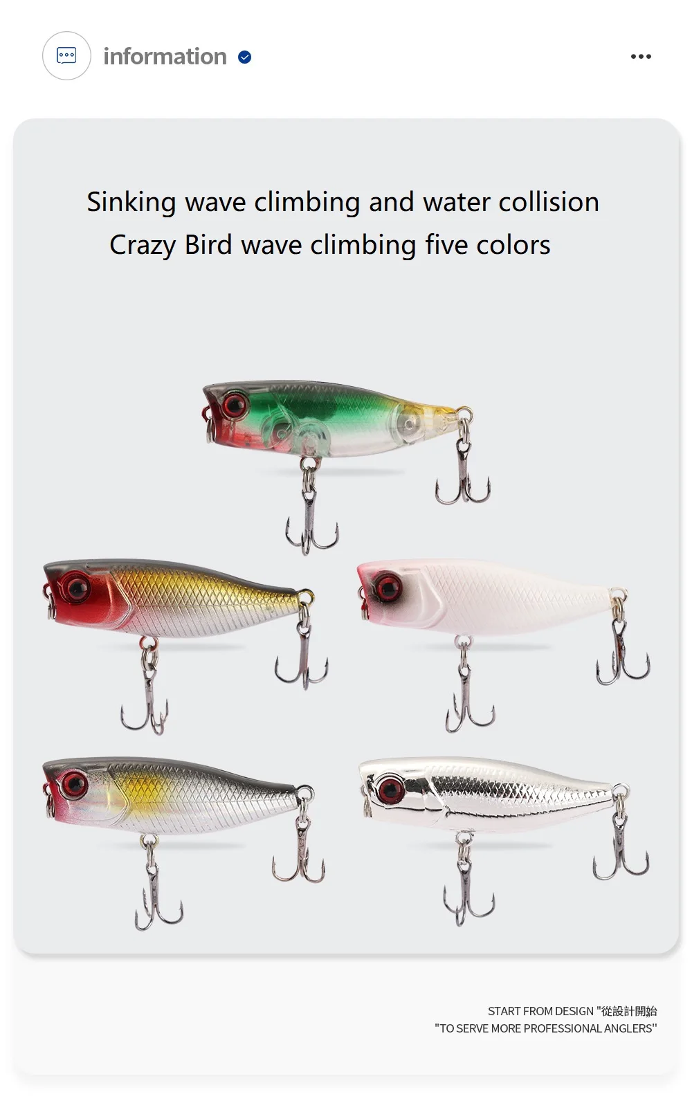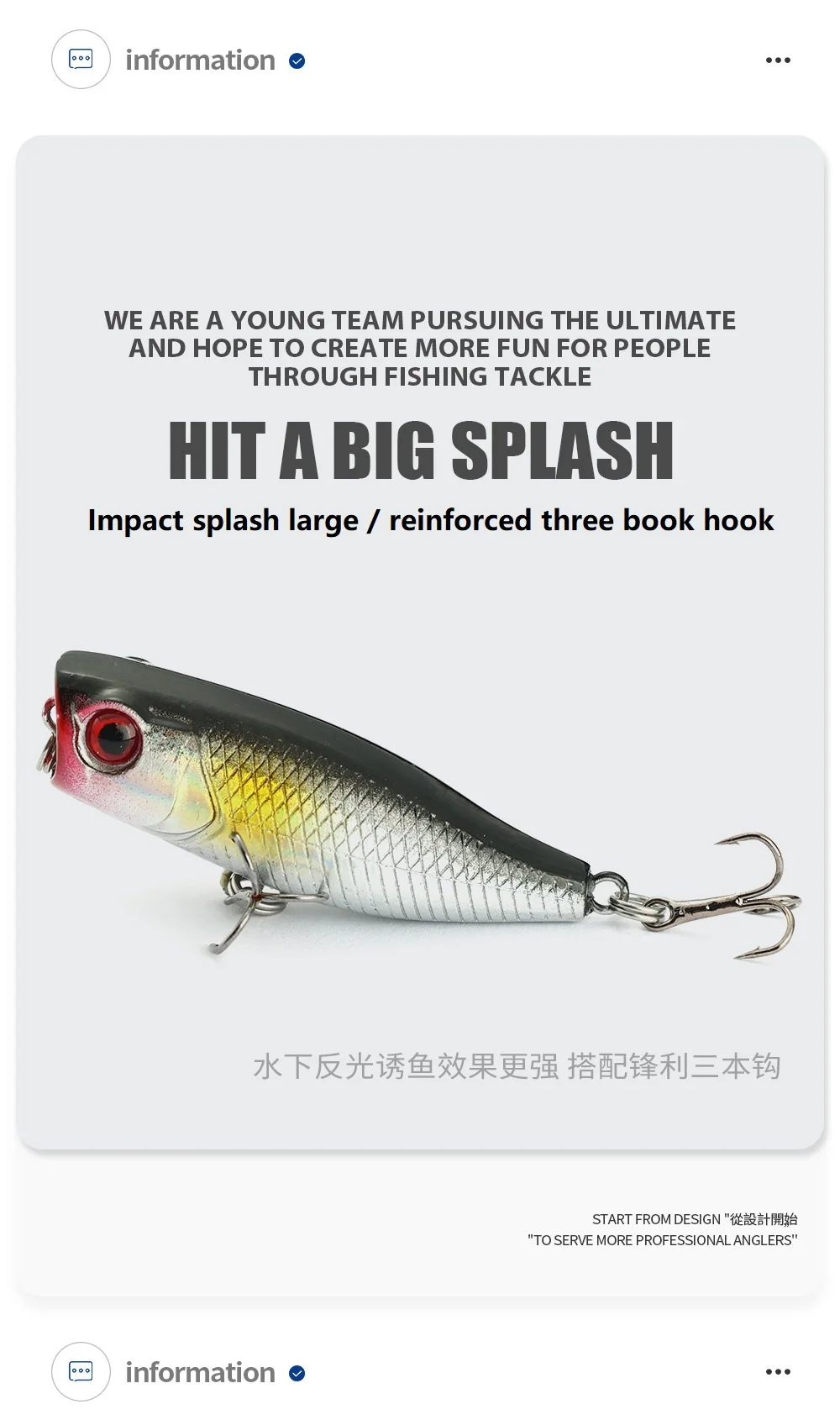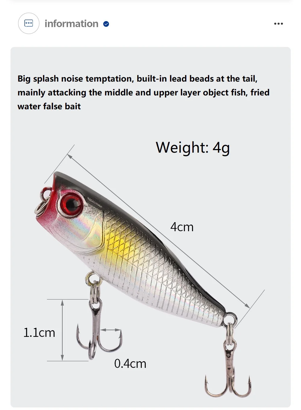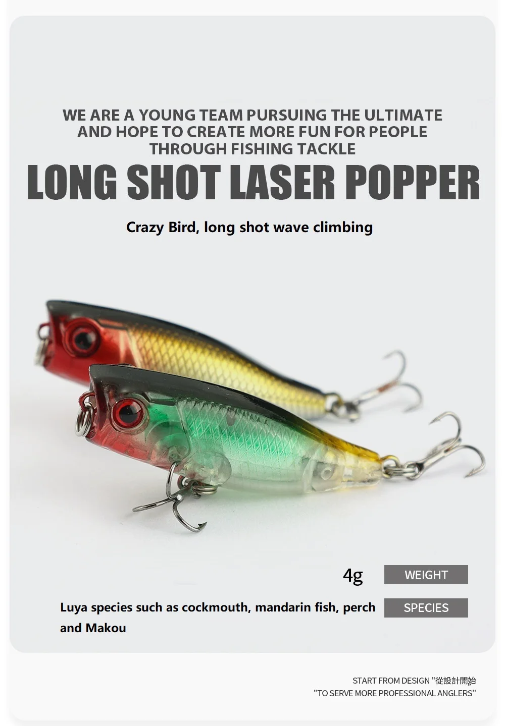 Señuelos de Pesca flotantes, cebo Popper Topwater Artificial 3D, Ojos de 4cm/4g, Wobblers, cebos duros de plástico con anzuelo triple