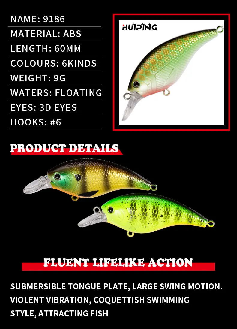 Señuelos de Pesca flotantes Crankbait, cebo duro Artificial para lubina de agua salada, manivela Popper, equipo de plástico Swimbait, 60mm, 9g