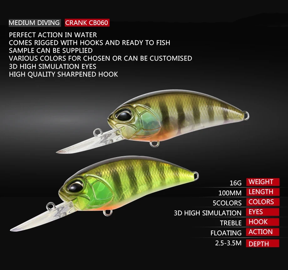 Crankbait Wobbler 100mm 16G, cebo de manivela flotante, señuelo de Pesca, lubina, trucha, cebo de Pesca Isca, cebo duro CB060, 1 piezas