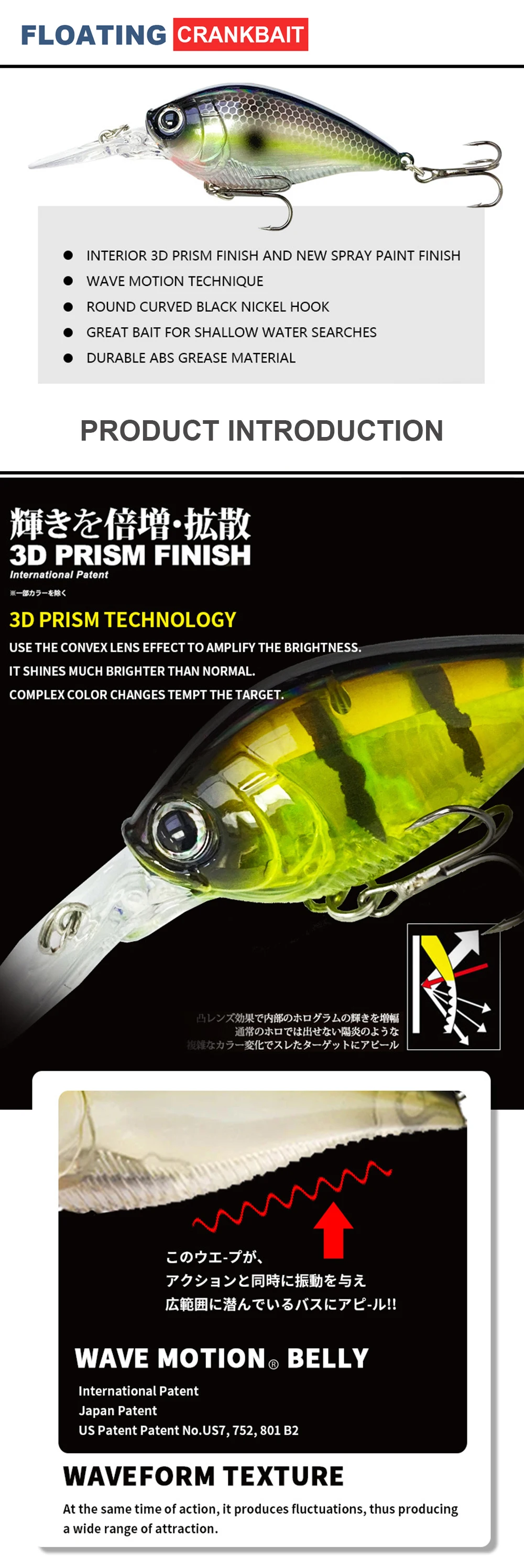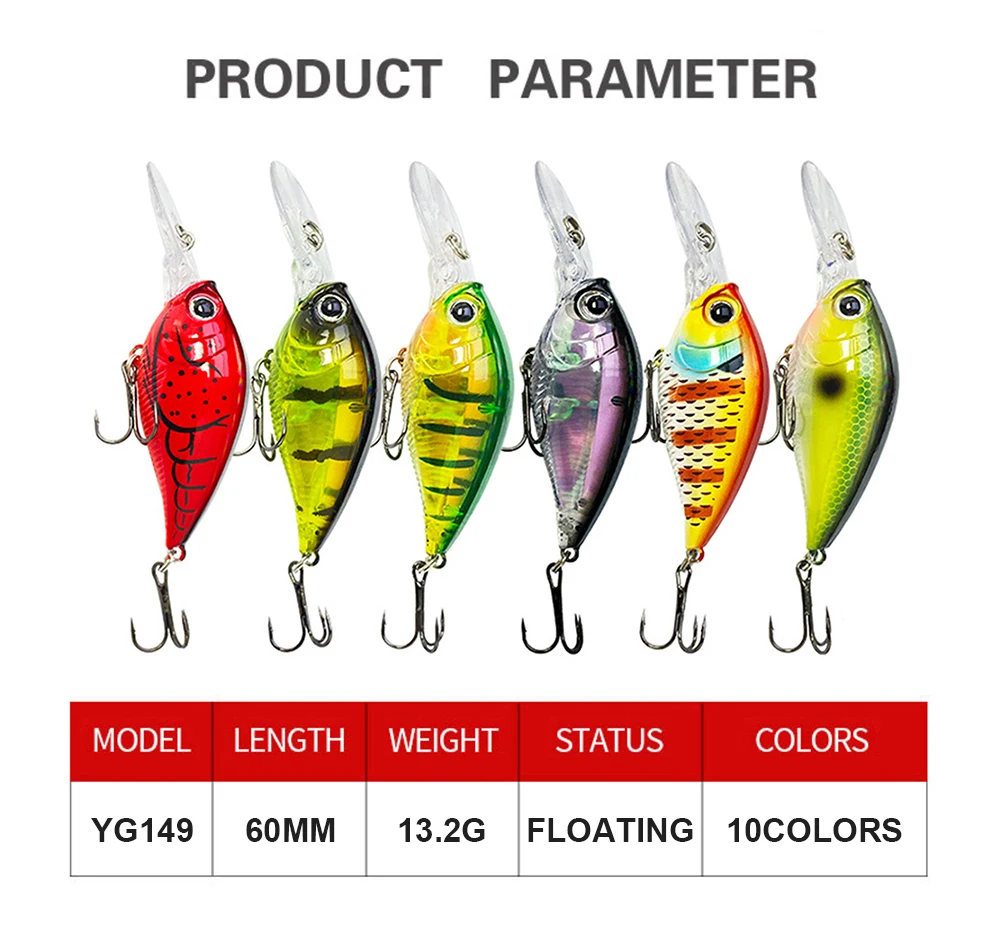 6cm 13,2g Señuelos de Pesca Crankbait flotante Wobbler buceo profundo labios largos cebo duro Artificial agua de mar pesca mero YG149