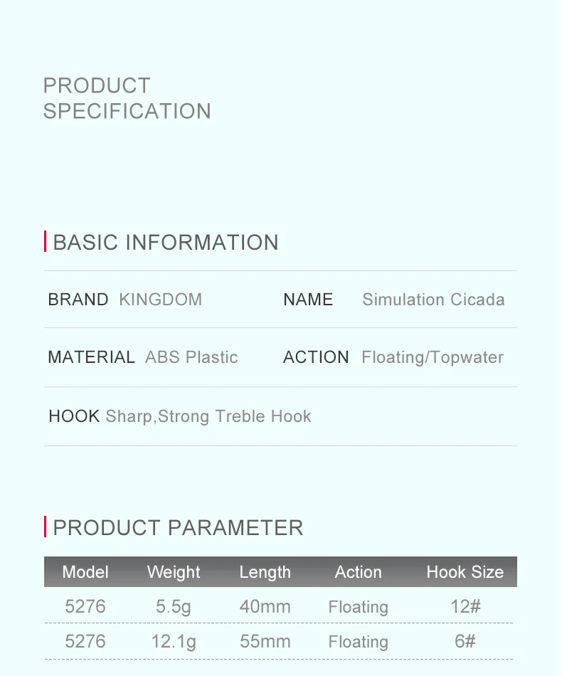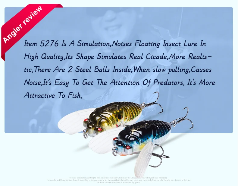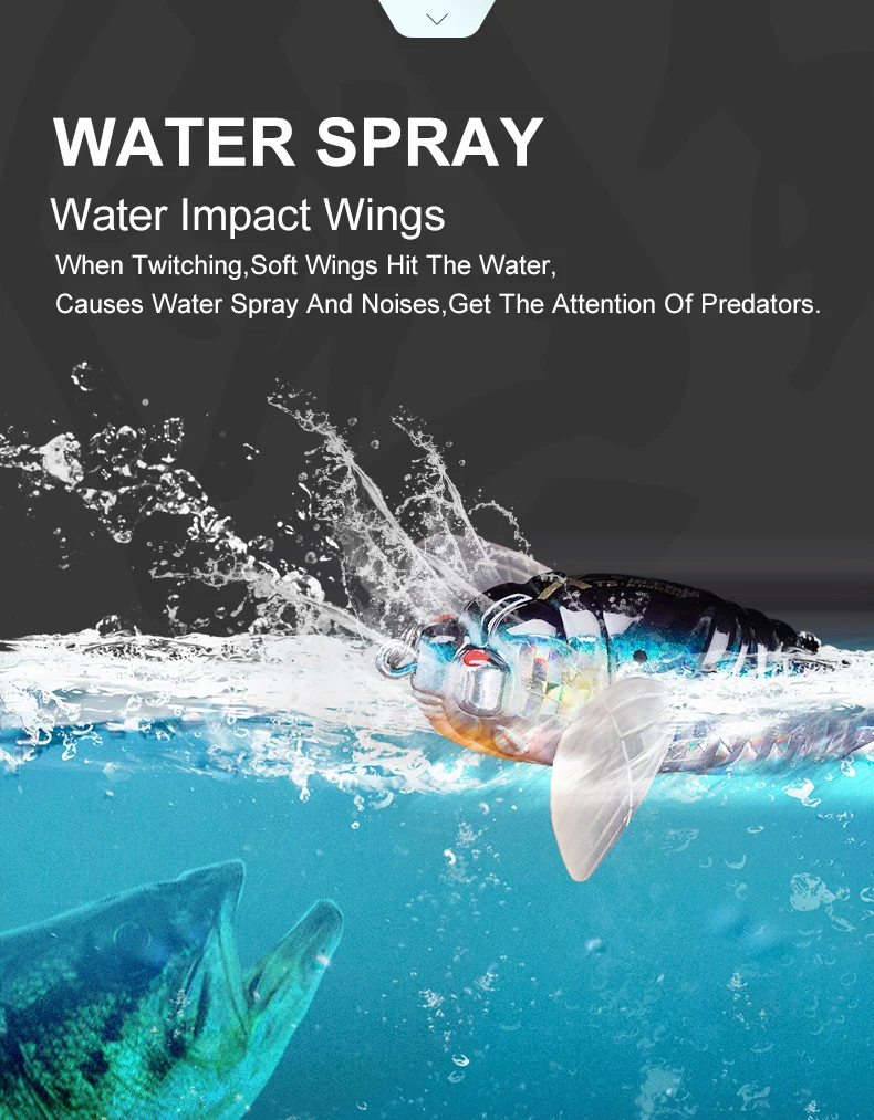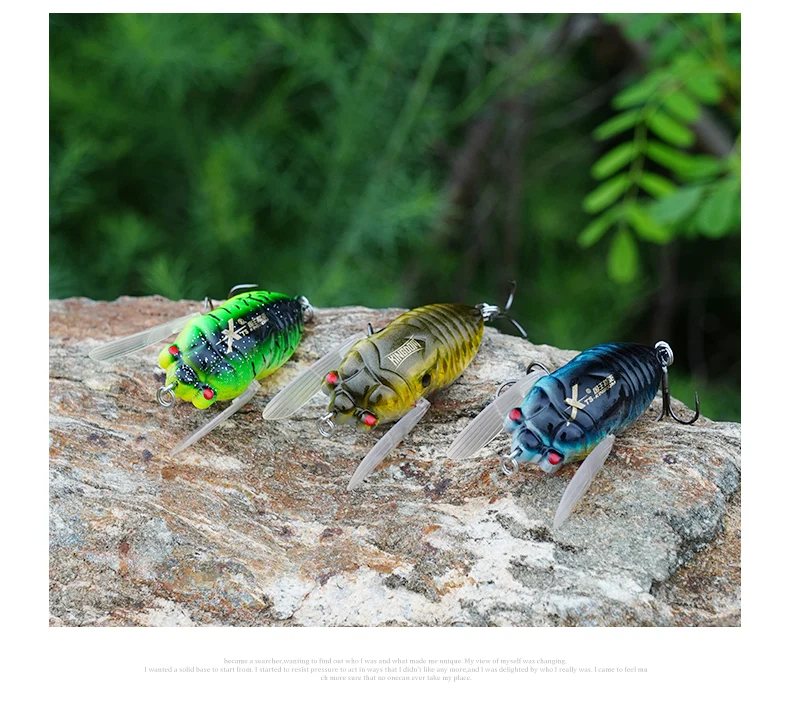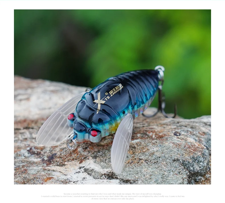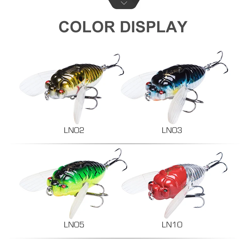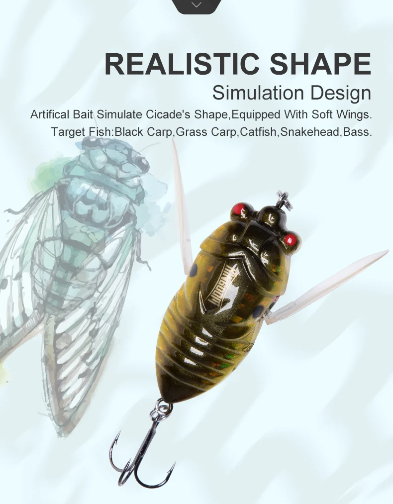 2.Señuelo de simulación de cigarra: línea láser especial para atraer más peces, revestimiento UV para evitar rayones.