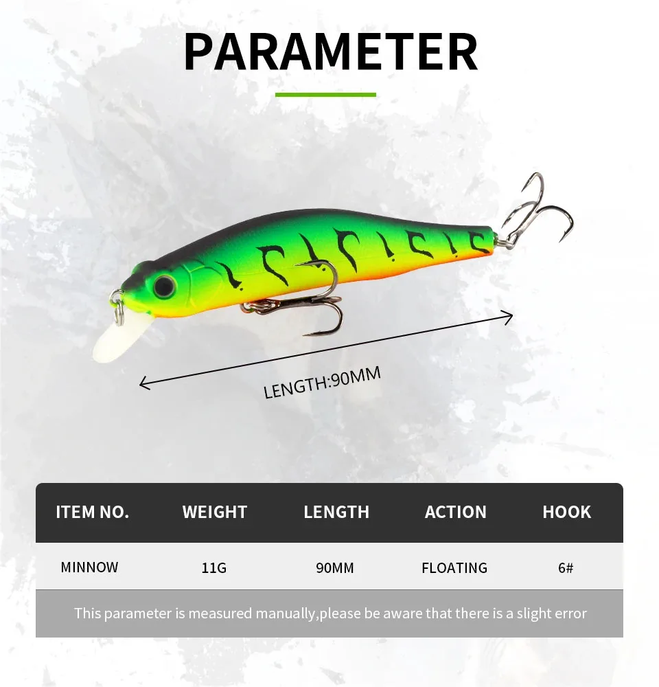 Modelo caliente flotante Minnow señuelo de pesca Wobbler 90mm 11g cebo duro Artificial calidad profesional Swimbait Tackle Accesorios