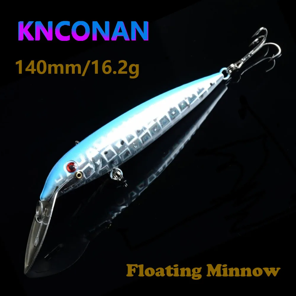 Señuelos de Pesca flotantes de pececillo, 140mm, 16,2g, cebos duros artificiales de fundición larga, lubina, trucha, Swimbait, Pesca Wobbler