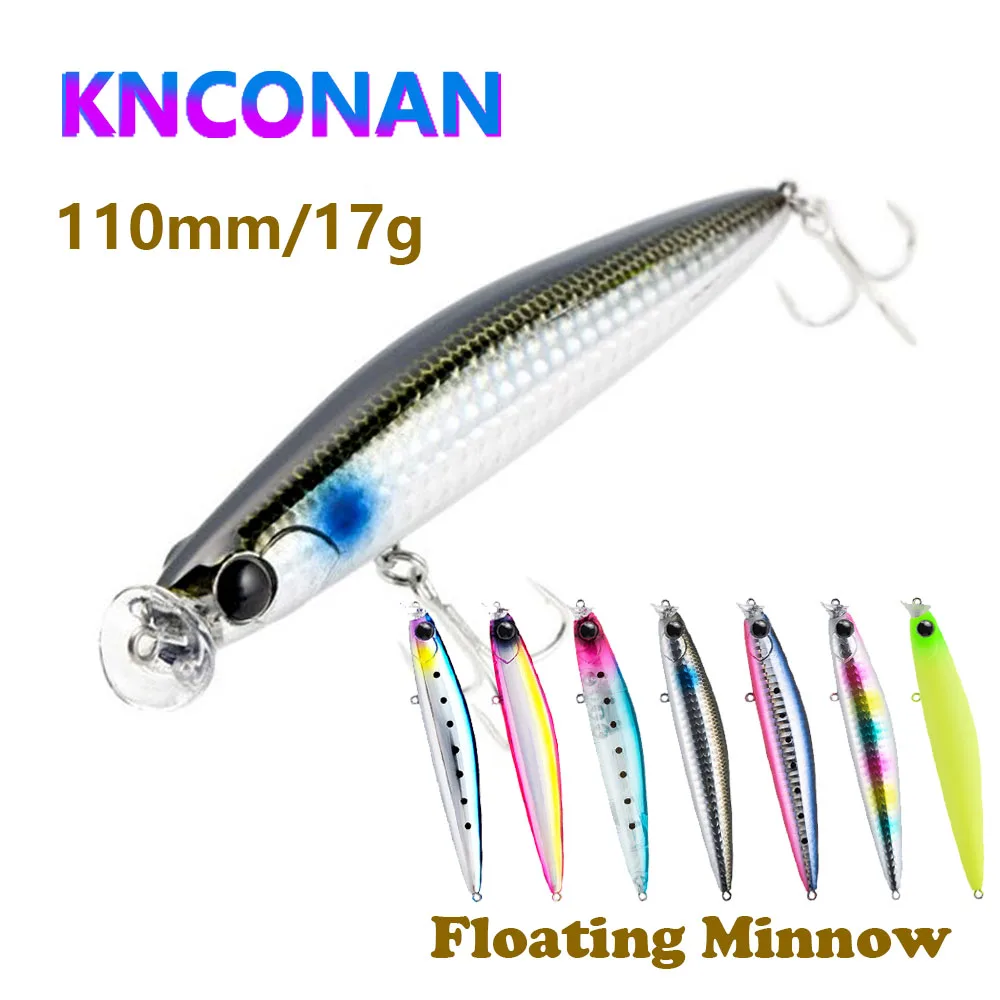 Señuelos de pesca flotantes para pececillos, 110mm, 17g, Wobbler de fundición larga para lubina, trucha, Lucio, agua salada, cebo duro Artificial, aparejos Jerkbait