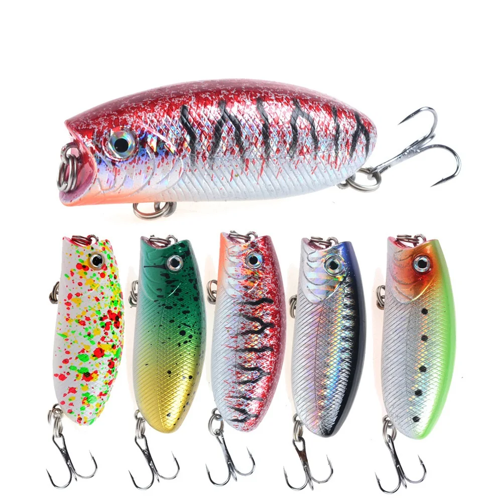 Señuelos de Pesca flotantes popper, Wobblers, 5,5 cm/10,4g, 3D ojos artificiales, cebo duro con anzuelo triple, aparejos de pesca Crankbait, 1 ud.