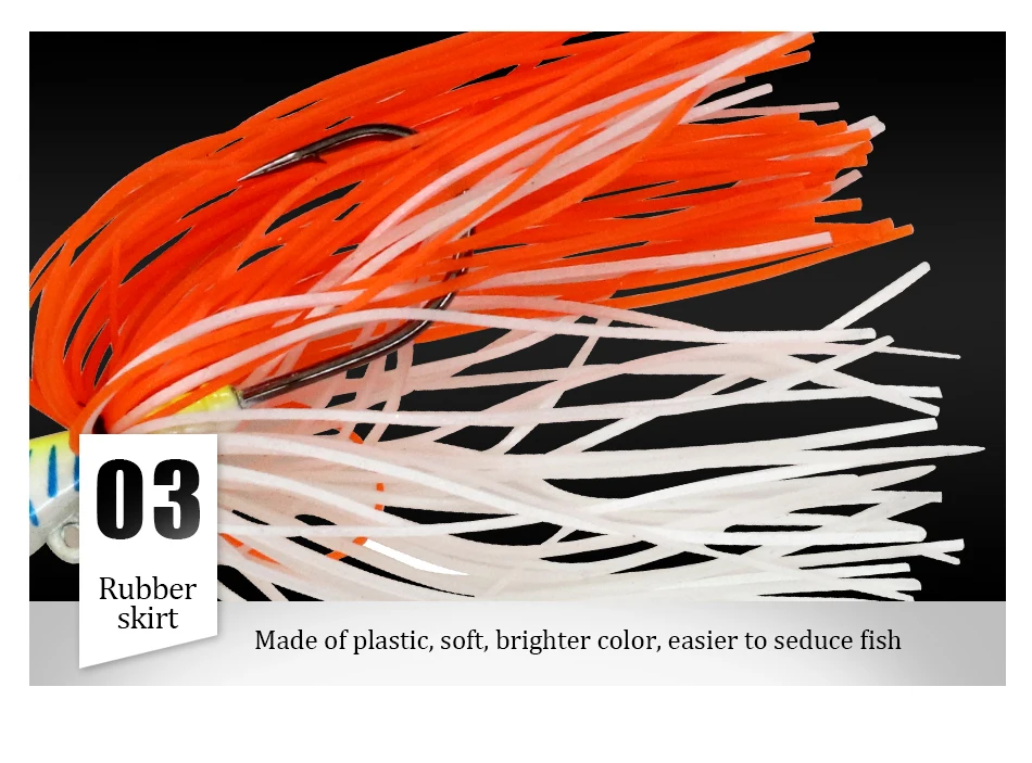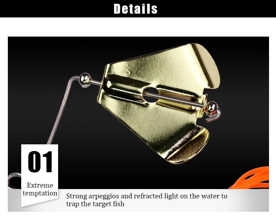 Hoja de estilo Clacker cuando el cebo giratorio funciona correctamente, las cuchillas de estilo clacker producen un buen brillo en el agua, atraparán peces. Este cebo de zumbido funciona bien en la pesca de lubina.