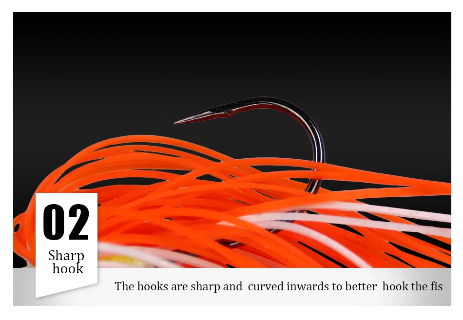 Característica:Anzuelos de pesca SHARP VMC el cebo Buzzbait tiene anzuelos de pesca VMC superafilados y duraderos, está hecho de acero al carbono de níquel negro de alta calidad.