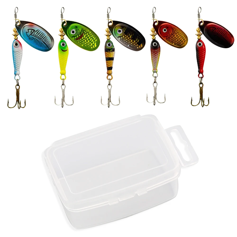 Señuelos de pesca giratorios de Metal, 5 uds., 9,1g, 7cm, lentejuelas giratorias, cebos duros artificiales, anzuelo, aparejos de pesca