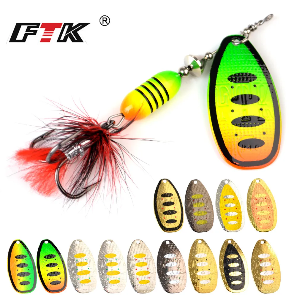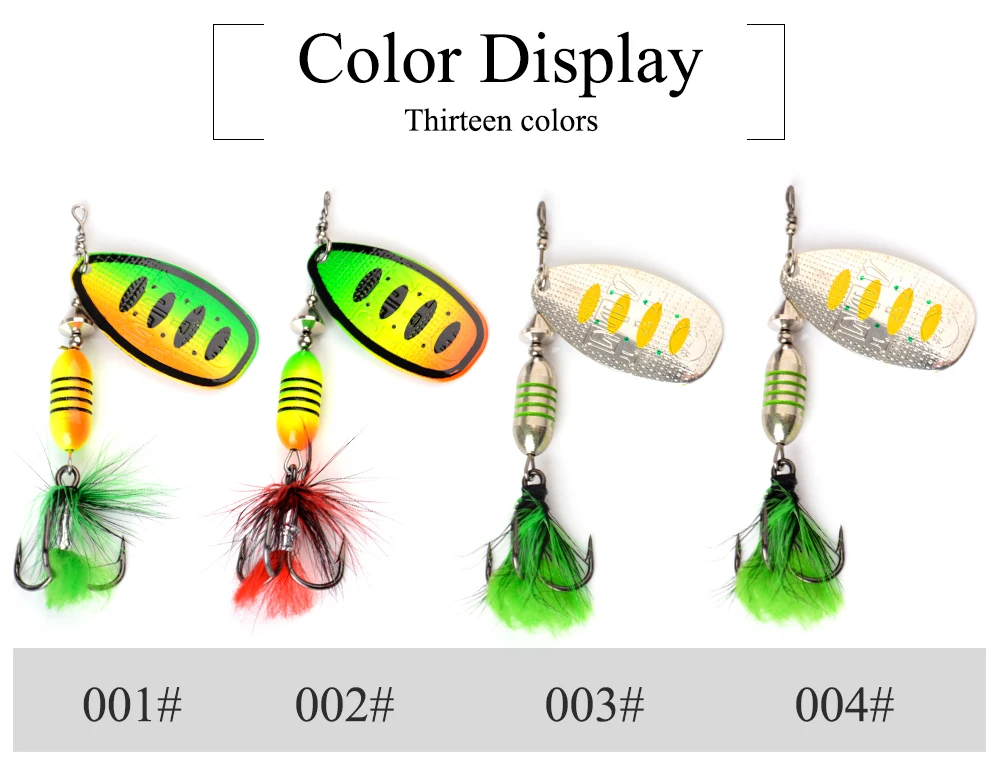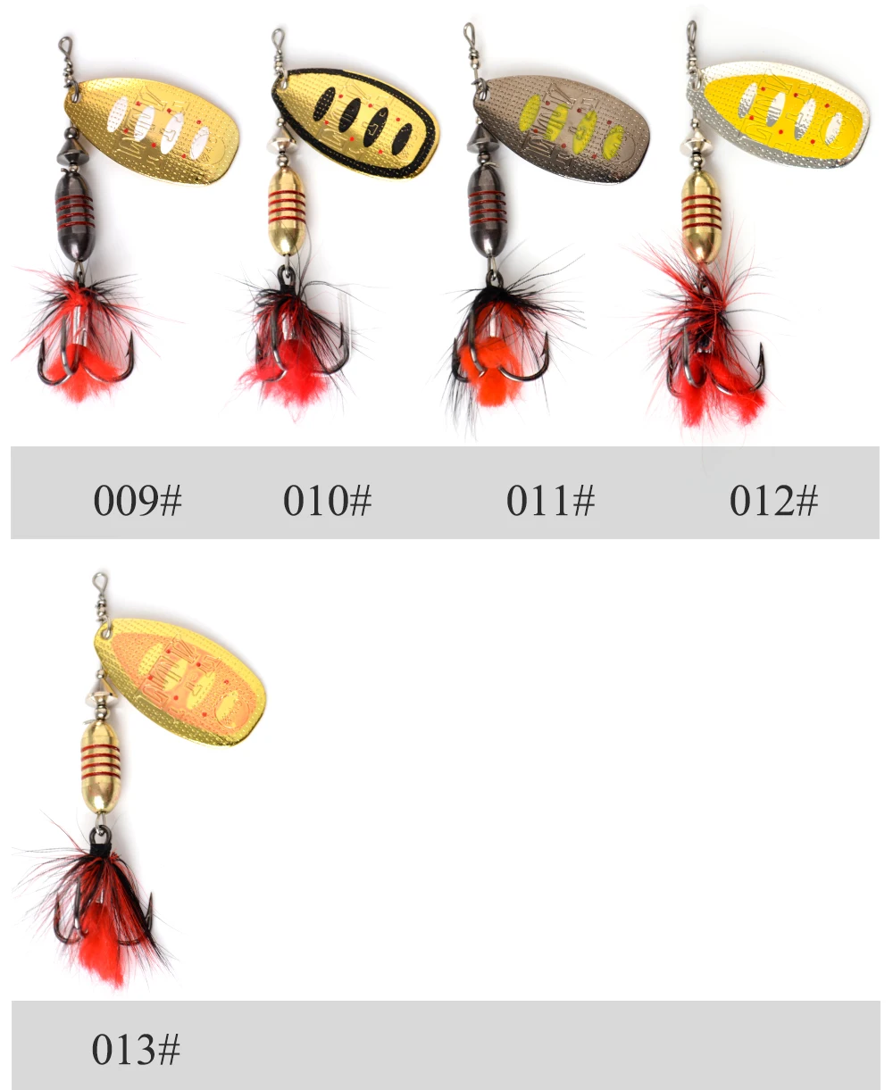 Señuelos de Pesca giratorios de piezas, señuelo de cuchara de 17,5g con pluma, anzuelos triples, 1 #, cebo artístico, Wobblers de Metal, aparejos de Lucio