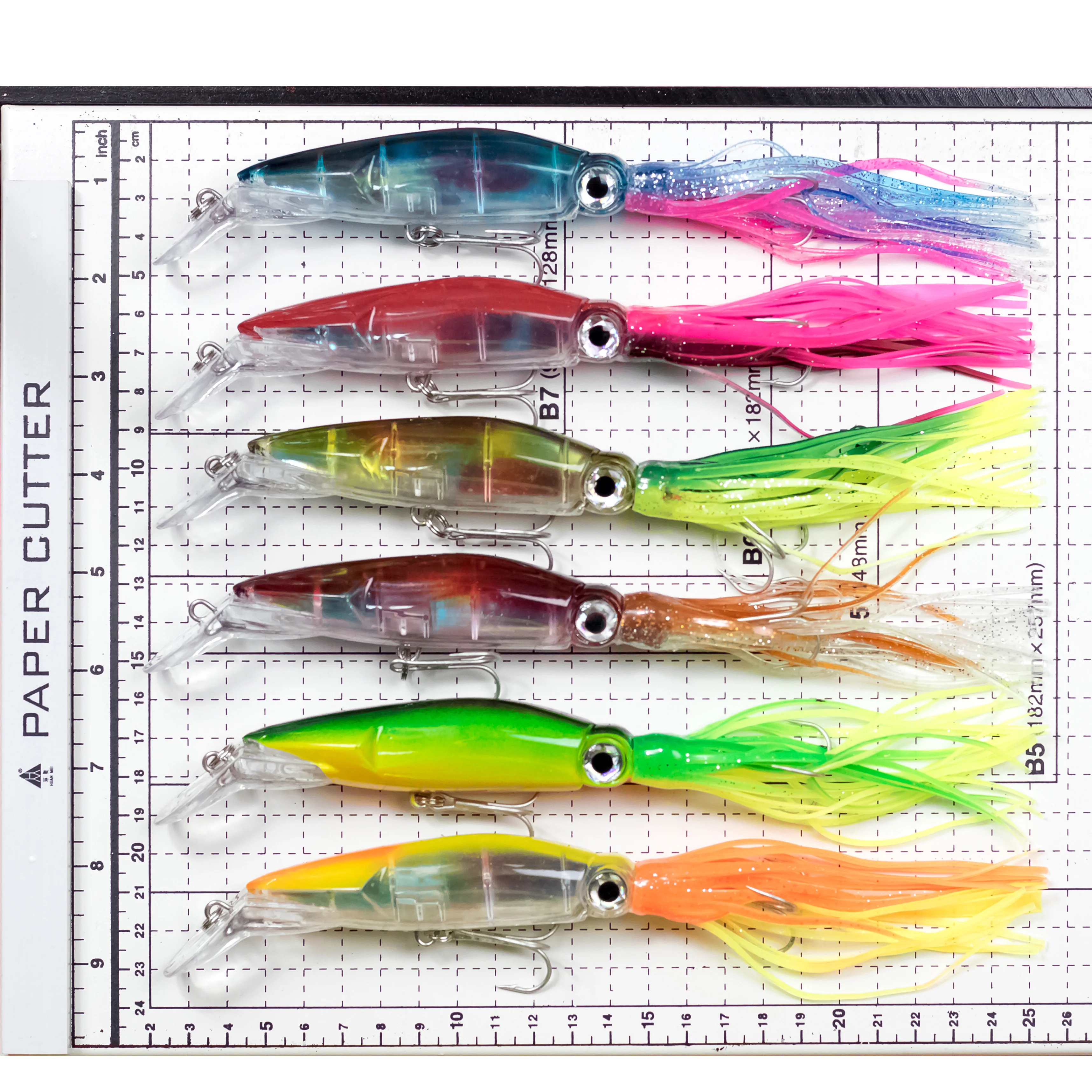 Comprar Señuelos de Pesca de goma de 6 piezas, faldas de calamar, cebos de pulpo, atún, pez vela, wobbler de mar, señuelo de silicona, aparejos de gancho de acero de alto carbono