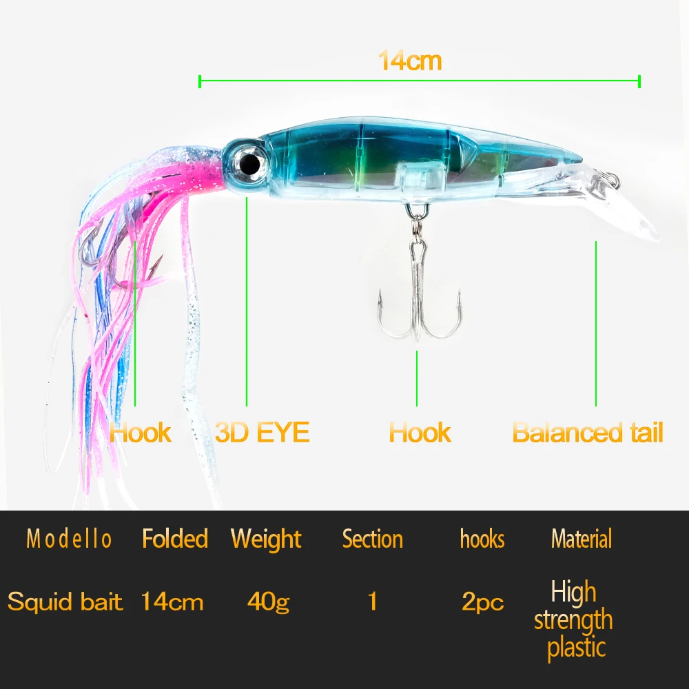 Ideales para la pesca de atún, pez vela, mar y otras especies de gran tamaño. El diseño de falda de calamar y pulpo imita perfectamente el movimiento natural de estos cefalópodos en el agua.