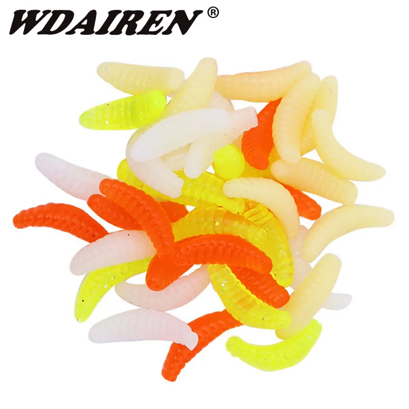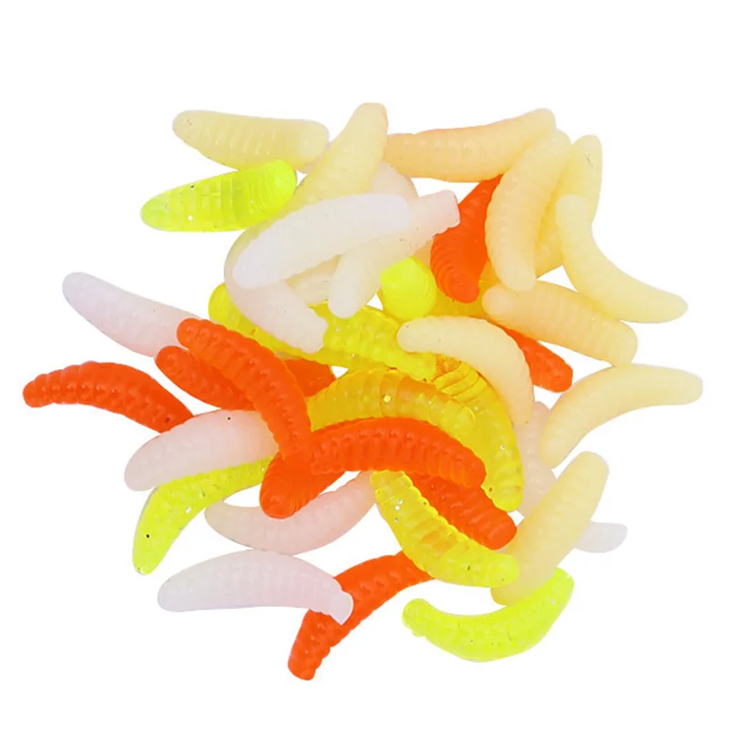 Señuelos de Pesca de goma de 100, señuelos suaves, cebos con olor a gusanos, aparejos de camarones brillantes, 2cm, 0,3g, cebos blandos, señuelos con olor a pescado realistas