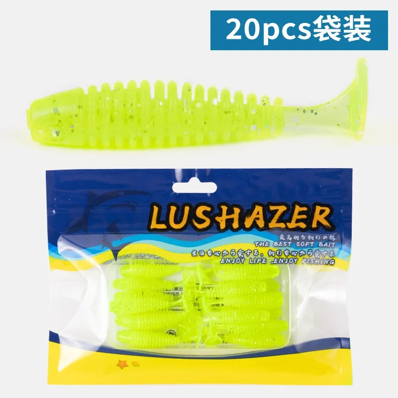Señuelos de pesca gordo de impacto oscilante, señuelos de cola de paleta de 35mm y 45mm, señuelo suave de pesca Wobbler para lubina, cebo de silicona