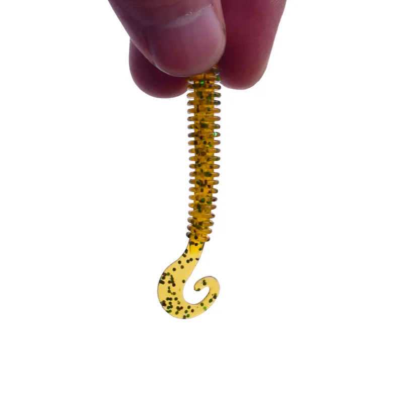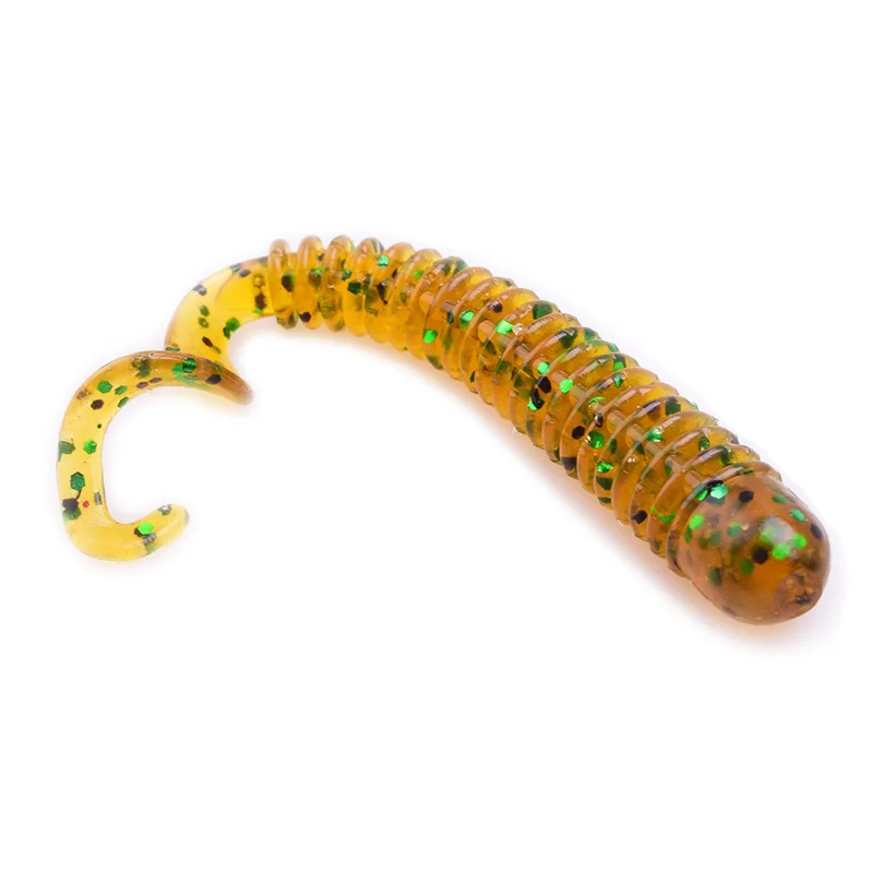 10 Uds. 60mm 1,3g gusanos cebo blando Jig Wobbler Señuelos de Pesca sabor a Camarón Artificial silicona cola espiral Swimbaits señuelo Tackle