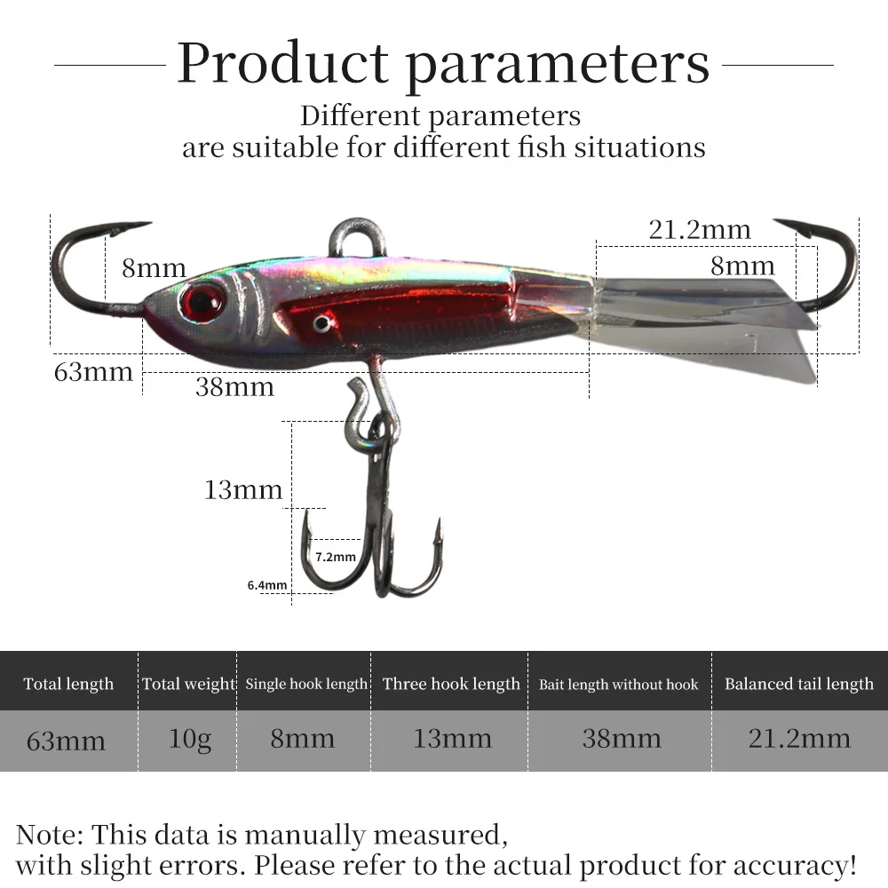 Señuelos de pesca en hielo de 10g con alas de cola deslizante, plantillas de pesca de hielo para invierno, para lubina, perca, Pike, Bluegill, plantillas verticales