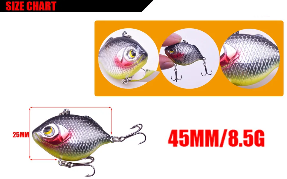 1 Señuelos de Pesca de hundimiento Vib de invierno de 4,5 cm 8,5g cebo duro Artificial de acción de vibración Mini Wobblers Crankbaits Pesca aparejos