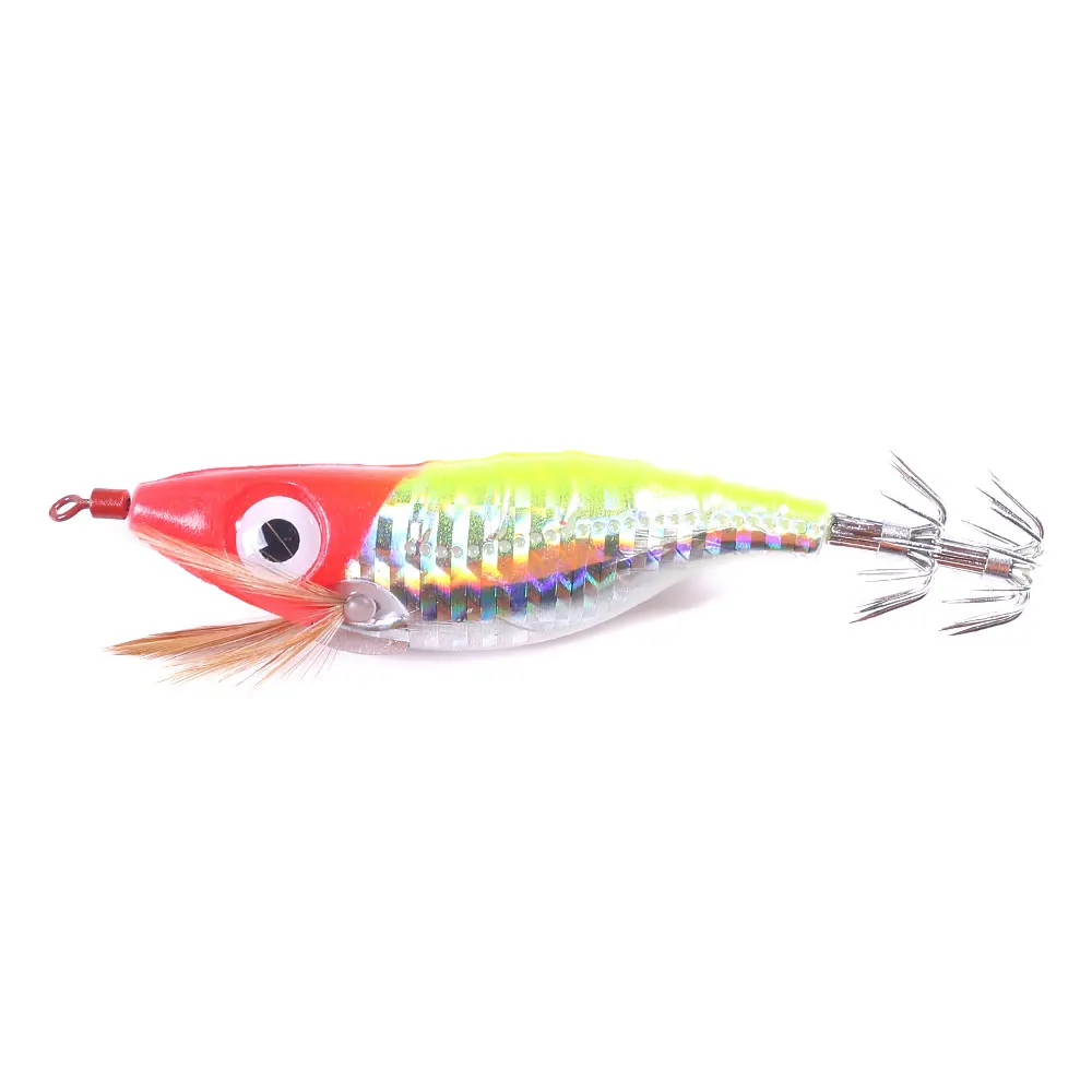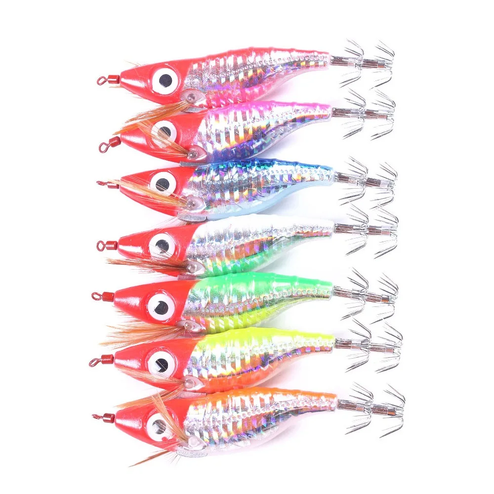 Señuelos de pesca Jigging de camarones de madera, cebo artificial, cebo luminoso de sepia de calamar, 10cm, 9G, 7 piezas