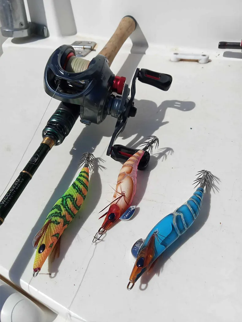 Kingdom Calamar Jigs Señuelo de pesca artificial Calamar Gancho Jiggging 2.5# 3.0# 3.5# Cebos duros para camarones para pesca en mar, sepia EGI