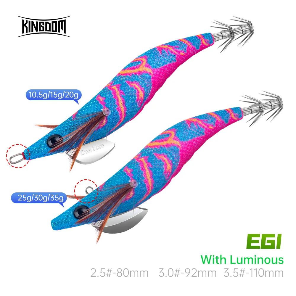 Kingdom Calamar Jigs Señuelo de pesca artificial Calamar Gancho Jiggging 2.5# 3.0# 3.5# Cebos duros para camarones para pesca en mar, sepia EGI