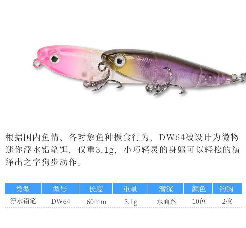 Señuelos de Pesca con lápiz flotante, cebo duro Artificial para trucha, lubina, Lucio, Swimbait, Wobbler, aparejos 3D, 60mm, 3,1g