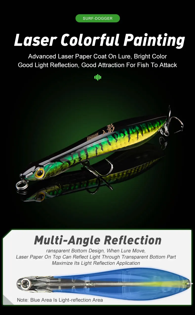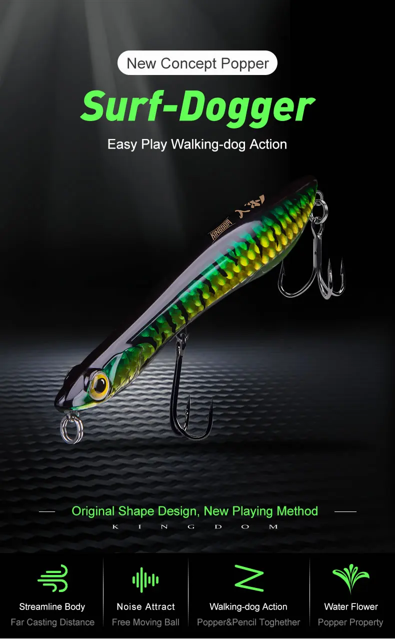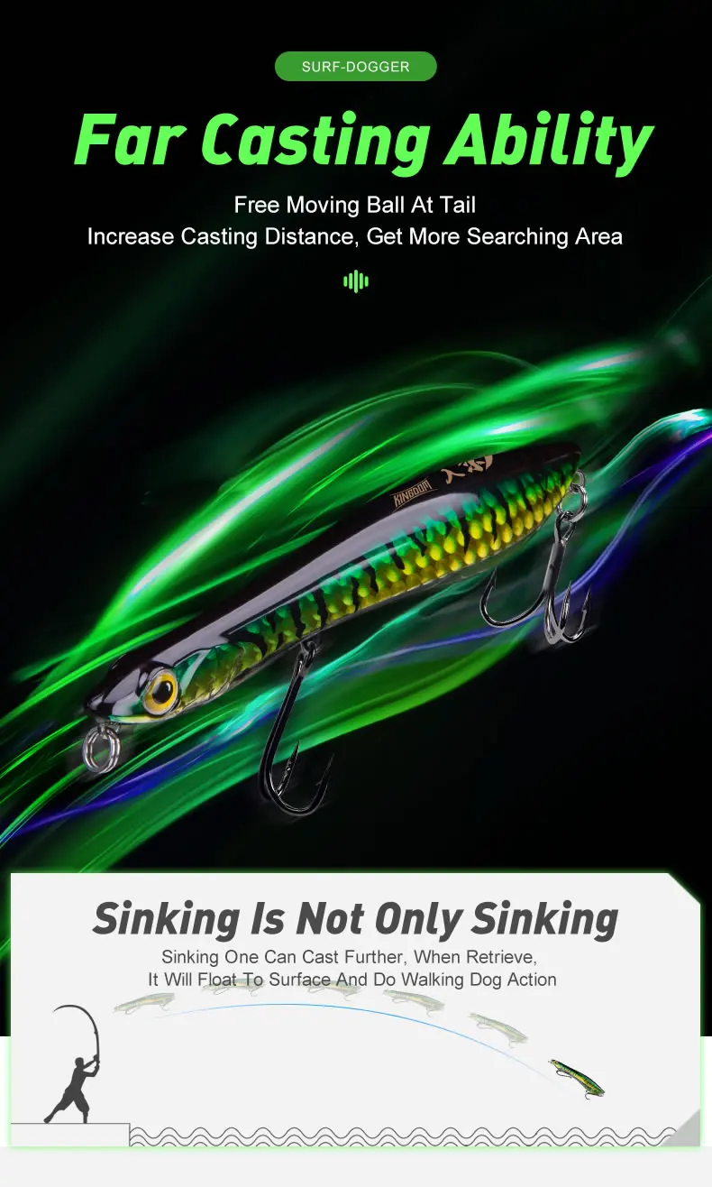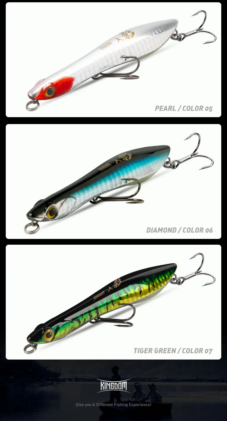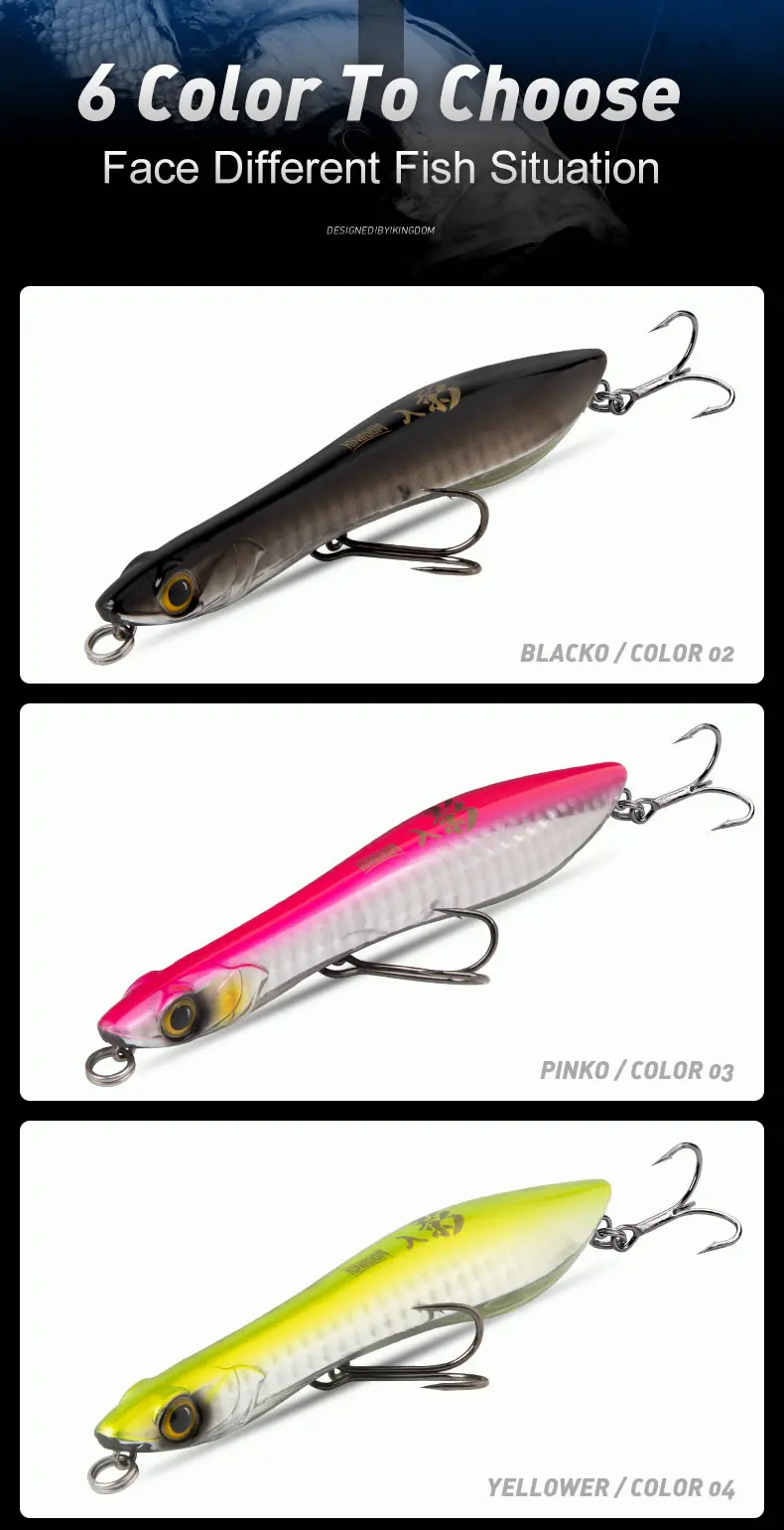 Kingdom-señuelos de pesca con lápiz flotante, 95mm, 110mm, señuelo duro hundido, cebo Artificial de fundición larga de agua salada para pesca de Lucio y lubina