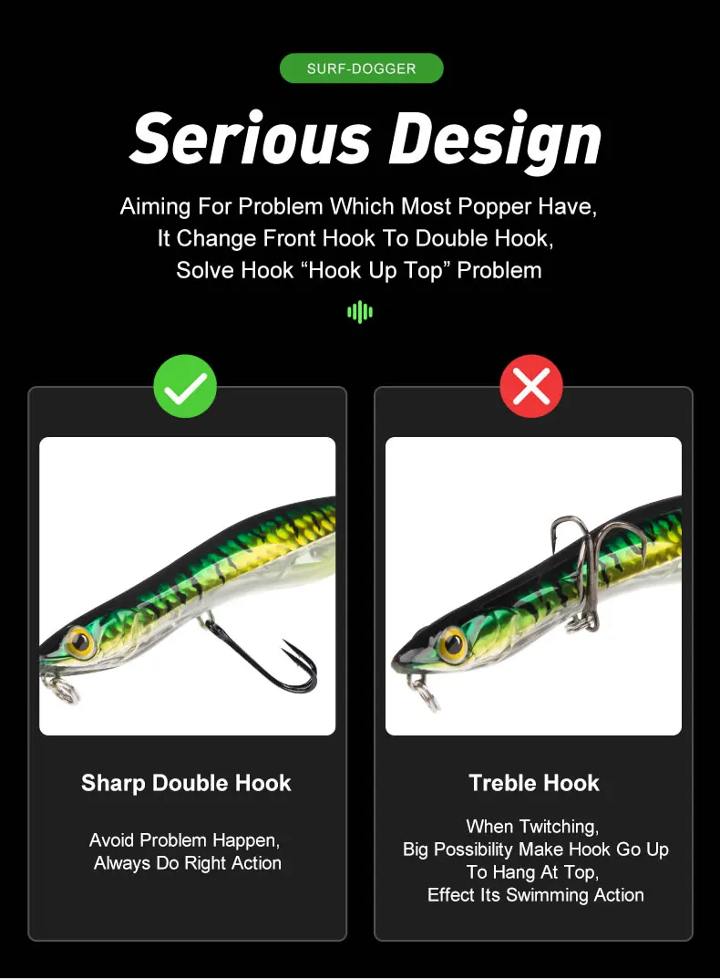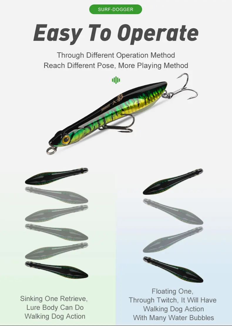 Como todos los señuelos de esta marca, de alta calidad, pero la pintura es un poco frágil y se raya rápidamente con los anzuelos durante los lanzamientos. Una capa de barniz súper duro corregiría el problema. Definitivamente, la mejor marca de señuelos en Aliexpress. 👍
