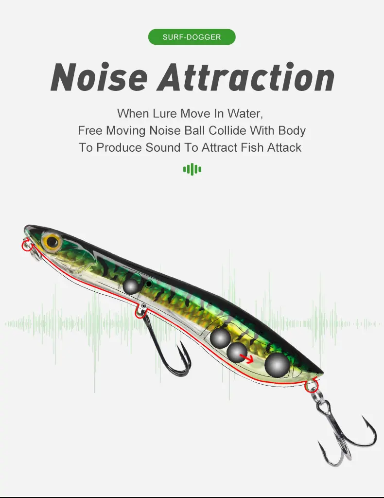 Las bolas de ruido que choquen crean sonido, atrayendo a los peces con un movimiento más natural y atractivo.