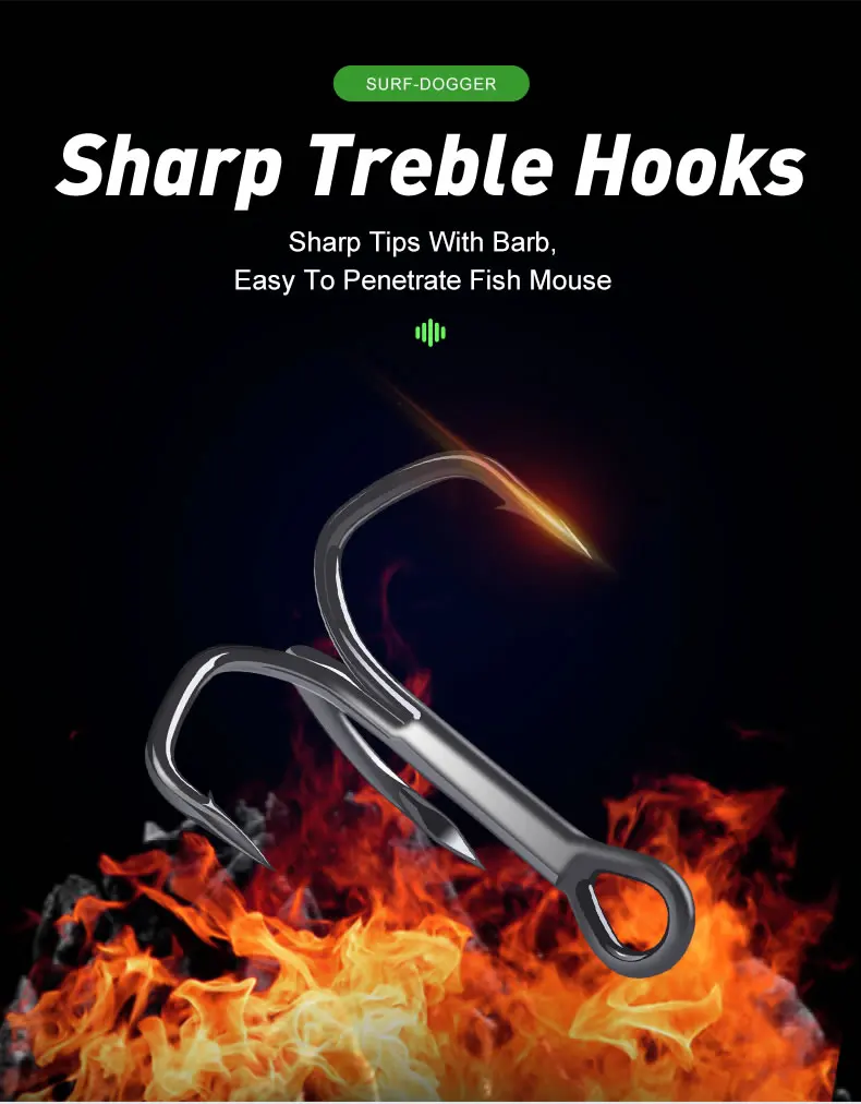 Los anzuelos triples afilados con púas garantizan una fácil penetración, aumentando sus posibilidades de lograr una captura exitosa.