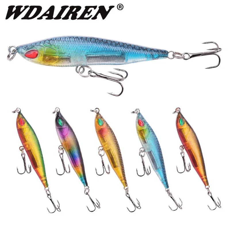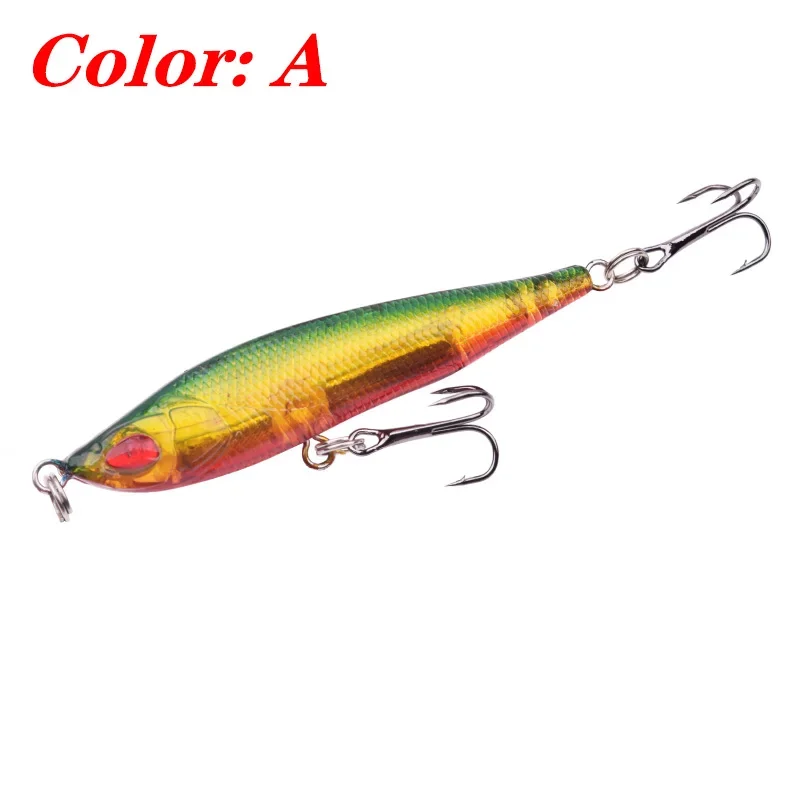 1 Uds. Señuelos de pesca con lápiz hundido, Wobblers de vibración de 7cm y 8,5g, cebo Artificial de plástico con anzuelos, aparejos de pesca en el mar para curricán