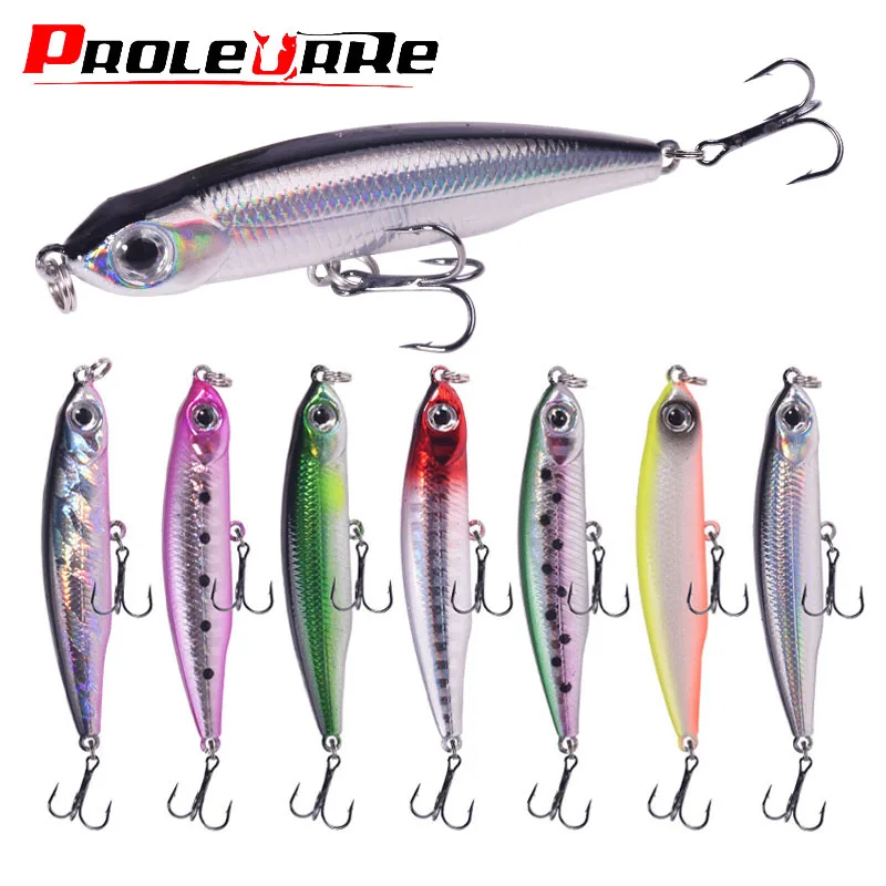 1 Señuelos de Pesca de lápiz de hundimiento de 1 piezas 6,3 cm 6g Wobblers de vibración Crankbaits con anzuelos cebo artificial duro de plástico para aparejos de lubina